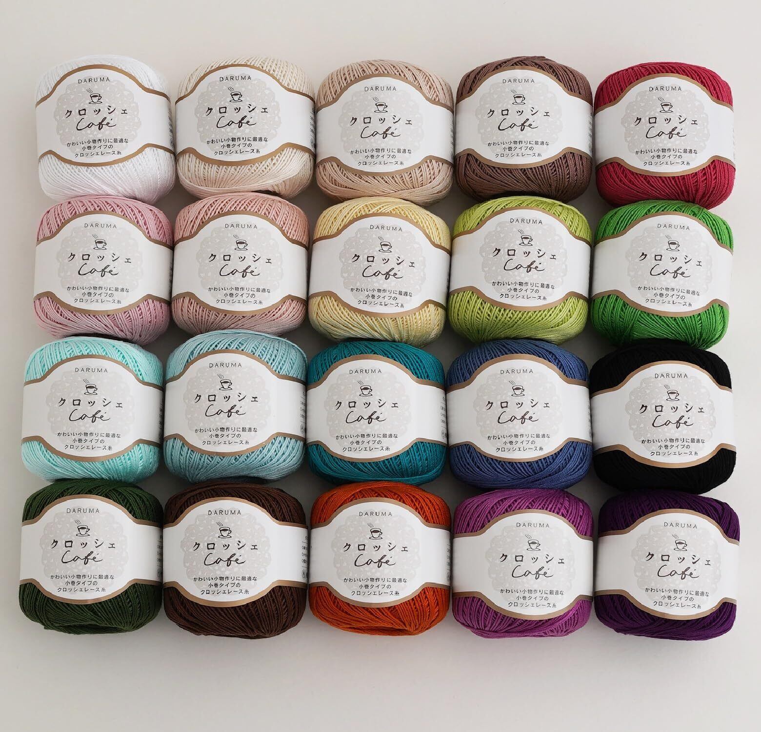 さらりとしたコットン100%の20番タイプの小巻レース糸です。 原糸から仕上げまで一貫生産の日本製のレース糸。 シルケット加工を施しており上品な艶と滑らかさが特徴です。 滑らかな指通りで編みやすく、かぎ針初心者の方にもおすすめです。 ウエア・小物・インテリアまで幅広く使え、アクセサリーやモチーフ編み作品にも最適です。 淡いパステルカラーからカラフルで鮮やかなカラー、シックで深みのあるカラーまで20色のカラーバリエーション。