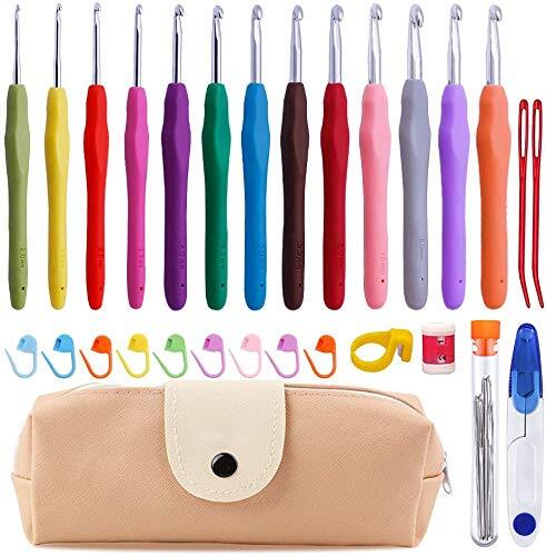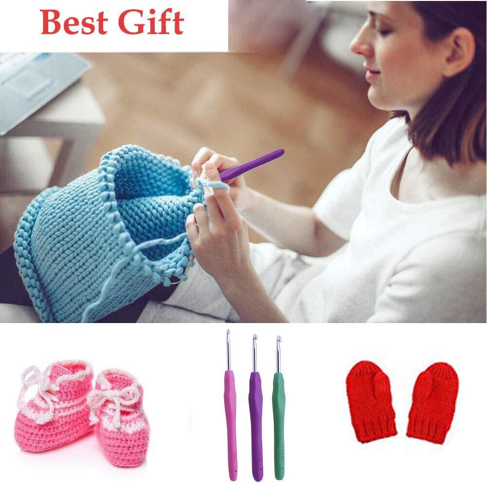 かぎ針セット内容: 13*編み針、10*段数マーカー、1*ハサミ、1*目数段数計、9*縫い針、2*なわあみ針、1*PUバッグ、1*カッター。編んだ時に余計な引っ掛かりがなく、初心者でもスムーズに編むことのできます。