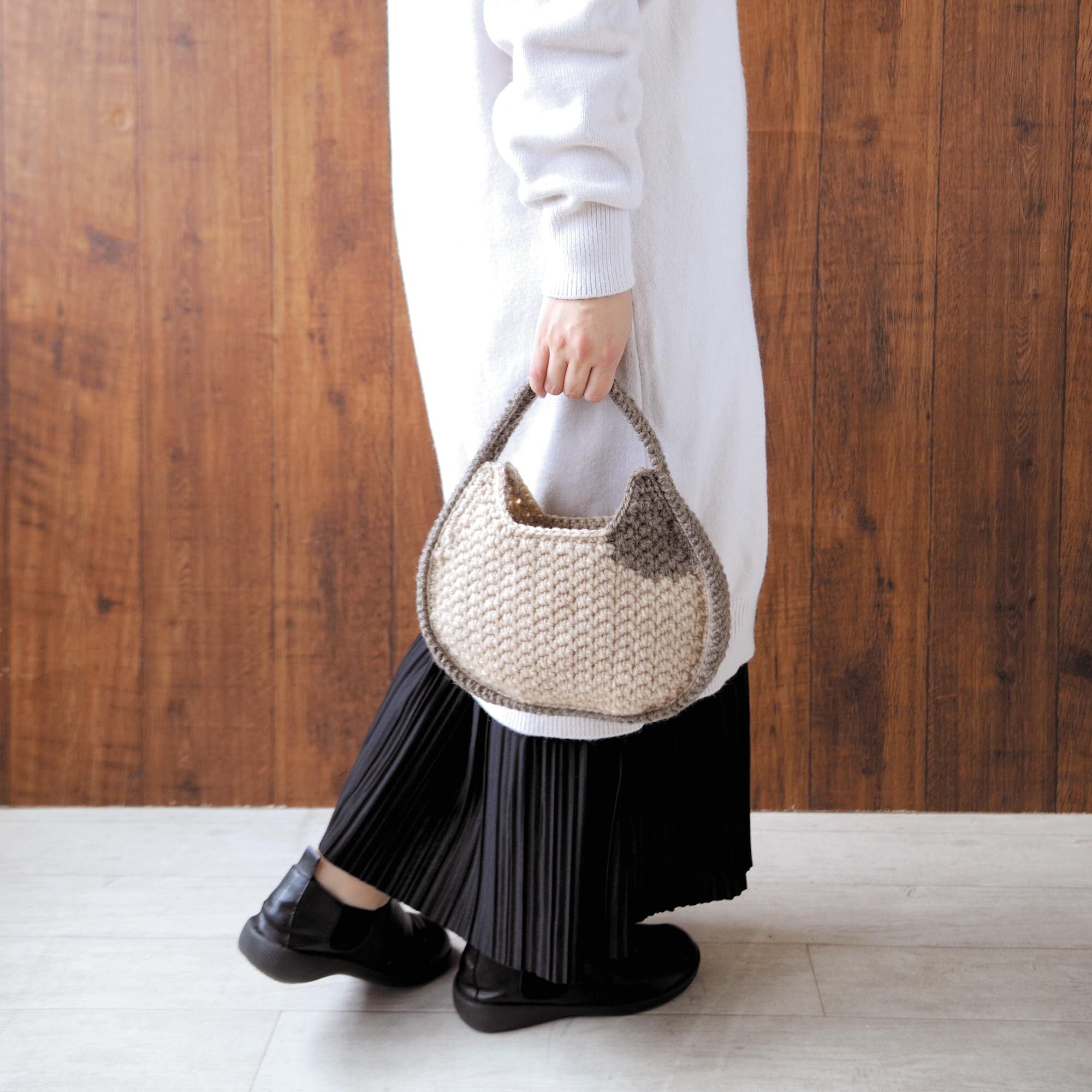 ハマナカ あみものキット ( ハマナカ ボニー 使用) ネコバッグ 小 COL. 614・615使用 (サイズ 約 幅27cm×深さ17cm×マチ4cm) H320-003-055