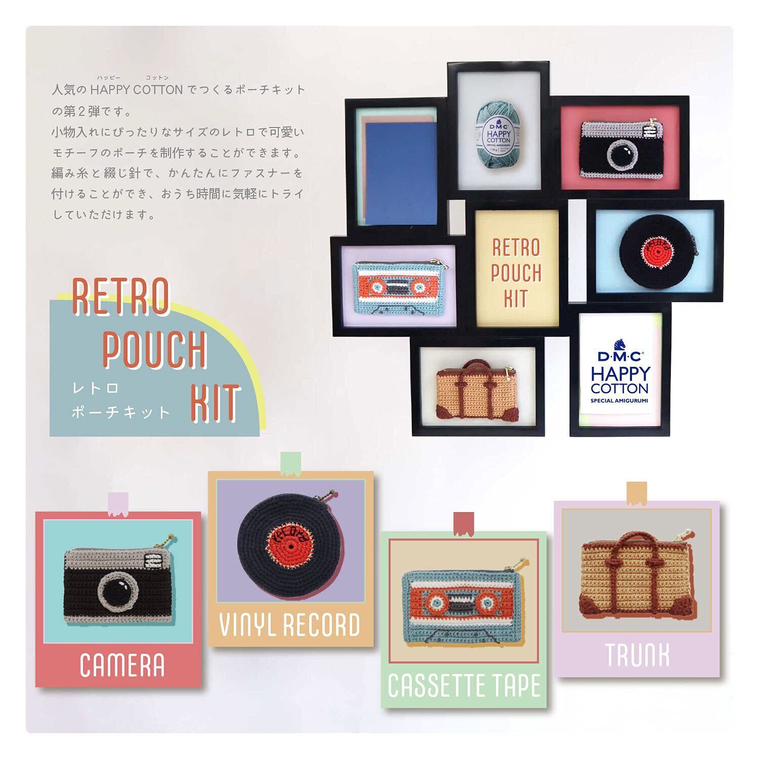 人気のDMC HAPPY COTTONで編んで作るレトロポーチのキット、カセットです。