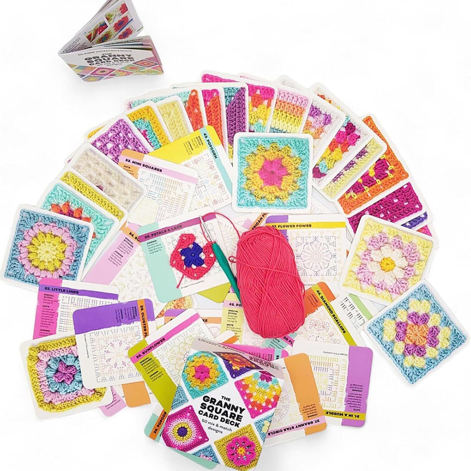グラニースクエアカードデッキ 50枚セット 編み物キット かぎ針編みパターン かぎ針編みブック 毛糸/編み針含まれていません 手芸キット 初心者 大人向け 手作り DIY 手鏡 (A)