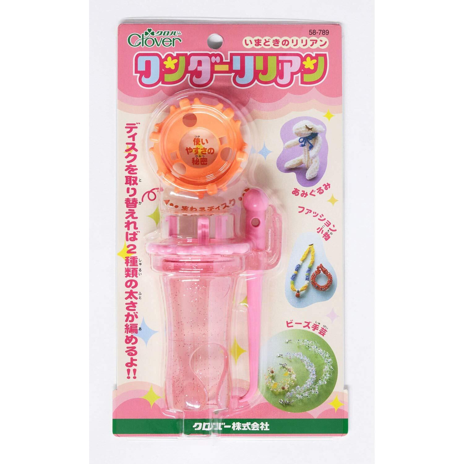 ディスクが回り、編みやすい位置に糸が次々とかかり、糸の位置や貼り方の調節がいらないので、リリアン編みが早く簡単にできて、アクセサリーや小物づくりが楽しめます。