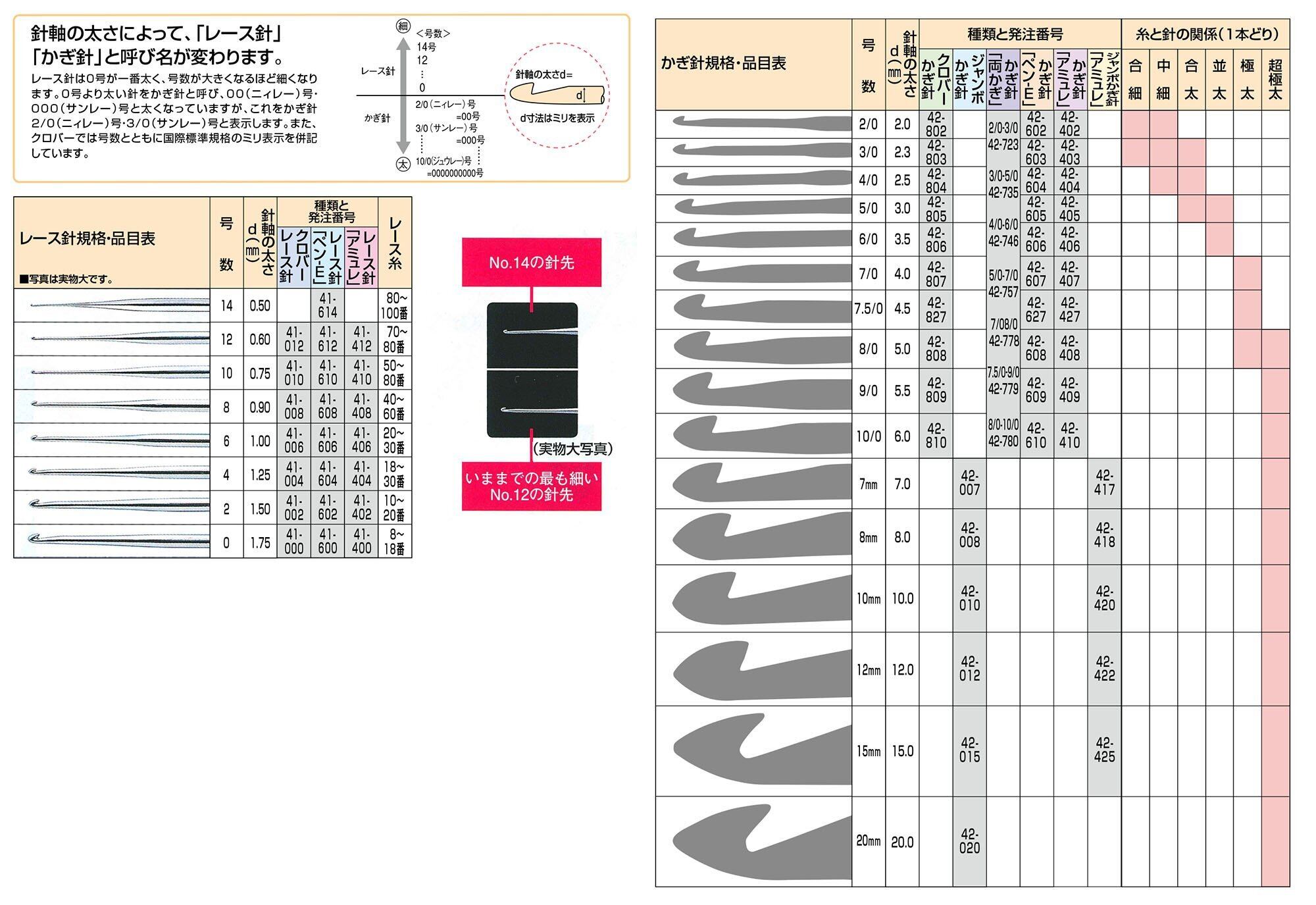 Clover かぎ針 両かぎ 5/0-7/0
