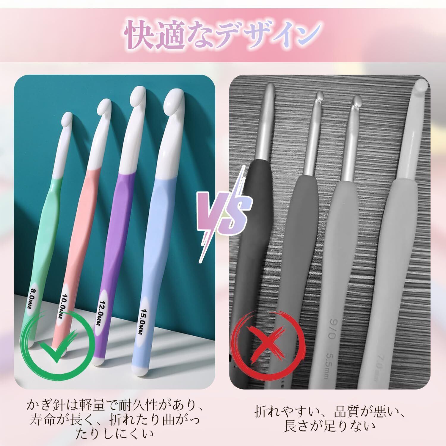 【人間工学に基づいた快適グリップ】TPR素材のハンドルは、人間工学に基づいて設計され、手にフィットする快適なグリップを実現。長時間の編み物でも手が疲れず、ストレスフリーで楽しめます。