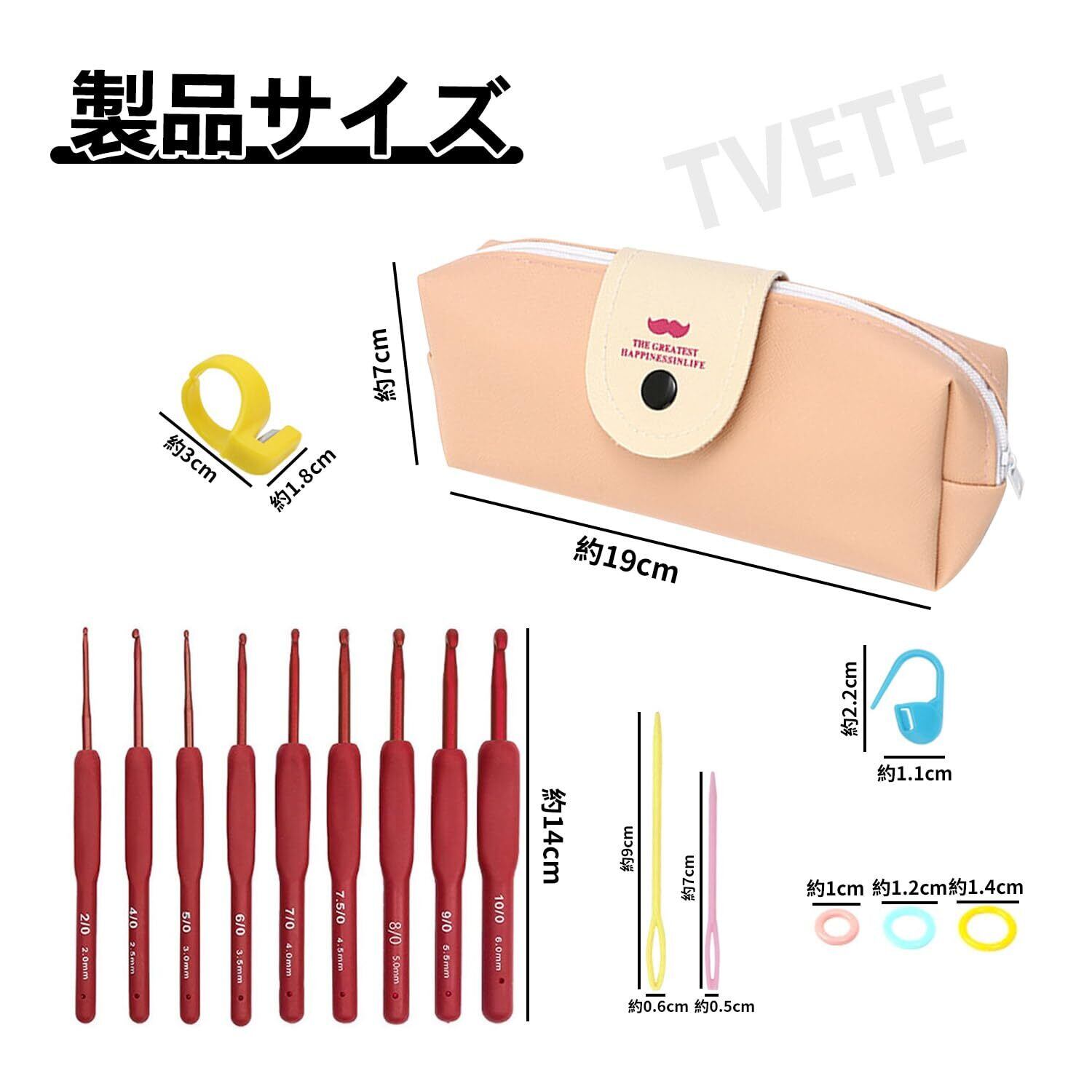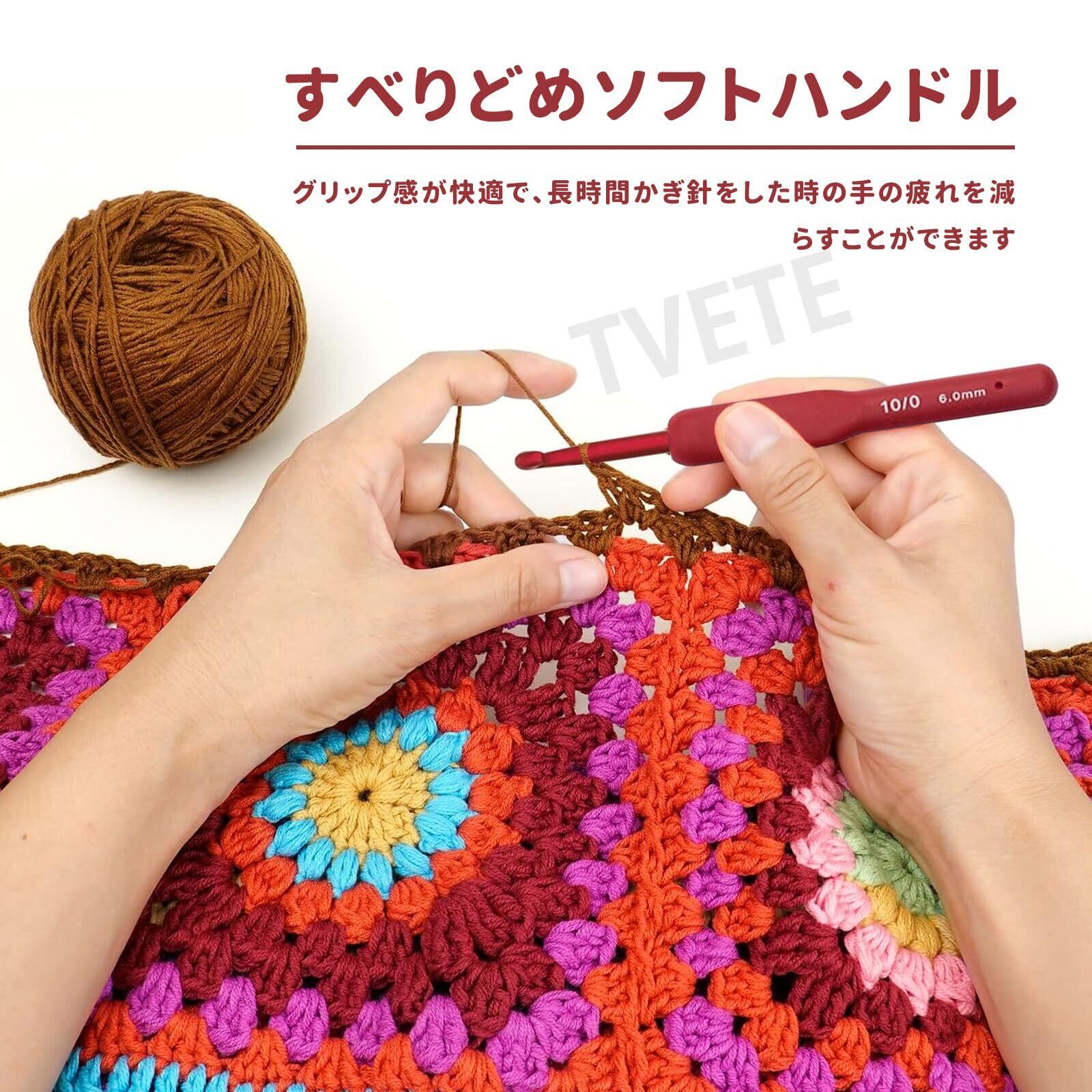 【商品内容】:かぎ針セットには、2.0mm~6.0mmの赤いハンドルのかぎ針9本、マーキングバックル10個、マーキングサークル9個、糸カッター1個、2サイズの縫合針4本、携帯用バッグ1個が含まれています。商品は全部で9種類、合計34点あります。フックは滑らかでバリのない表面と快適なグリップを備えており、手の疲労を軽減します。