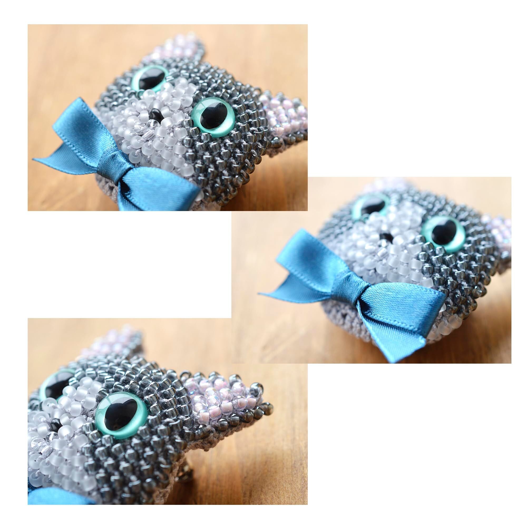 MIYUKI (ミユキ) ビーズキット かぎ針で編む ビーズ編み の 猫 ブローチ キット サイズ約 6cm×5.5cm ハチワレ BFK-659