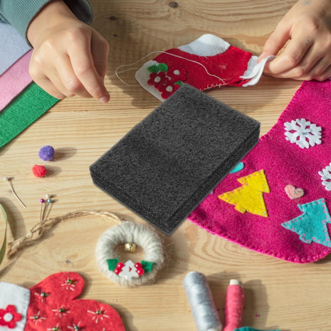 STOBOK 3枚 羊毛フェルトのワークマット ニードルフェルト用品 フェルトパッド ブラック 15×10×3cm フエルト作業台 厚め DIY 手芸用品 刺し針対応