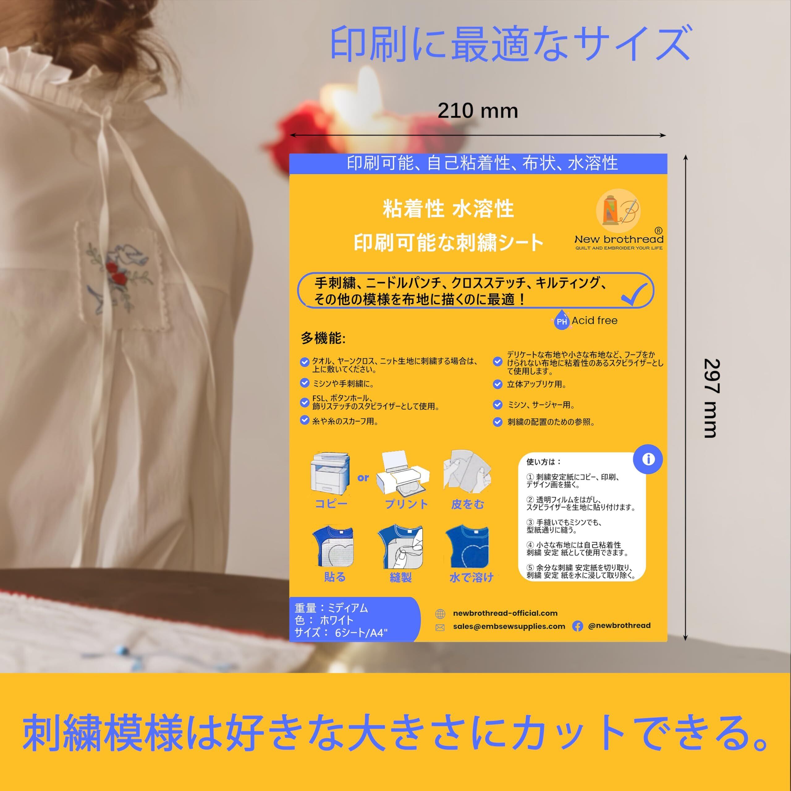 New brothread 6枚 A4 (29.7x21cm)粘着刺しゅう用水溶性シート 刺繍に 水でとける 下絵シート 印刷可能な刺繍紙 刺しゅう安定紙 手刺繍とミシン刺繍に適したパターンを印刷し、描くことができます