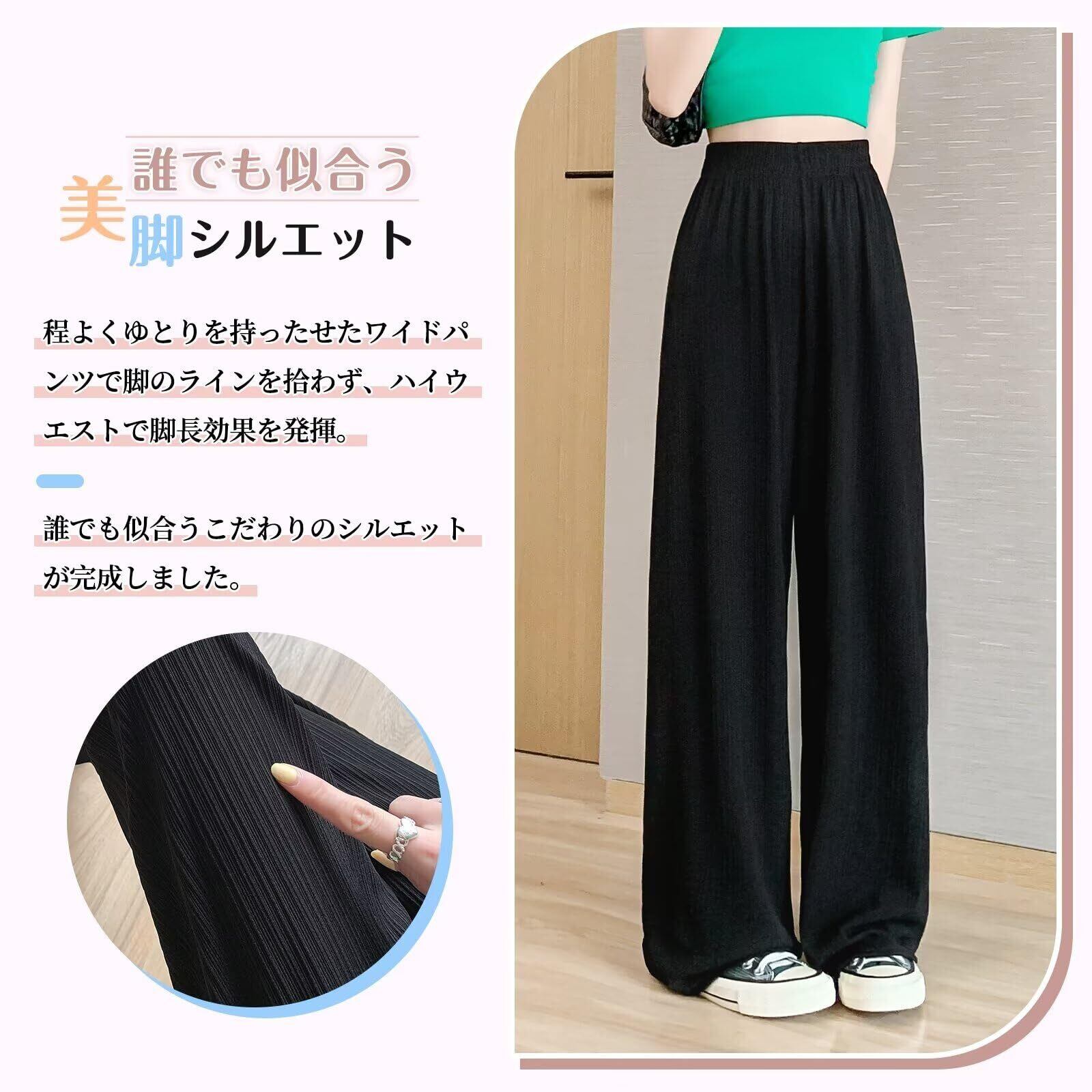 [Muxuryee] ワイドパンツ レディース ゆったり ロング丈 リラックスパンツ ガウチョパンツウエストゴム カジュアル 無地 夏 冷感パンツ ハイウエスト H789