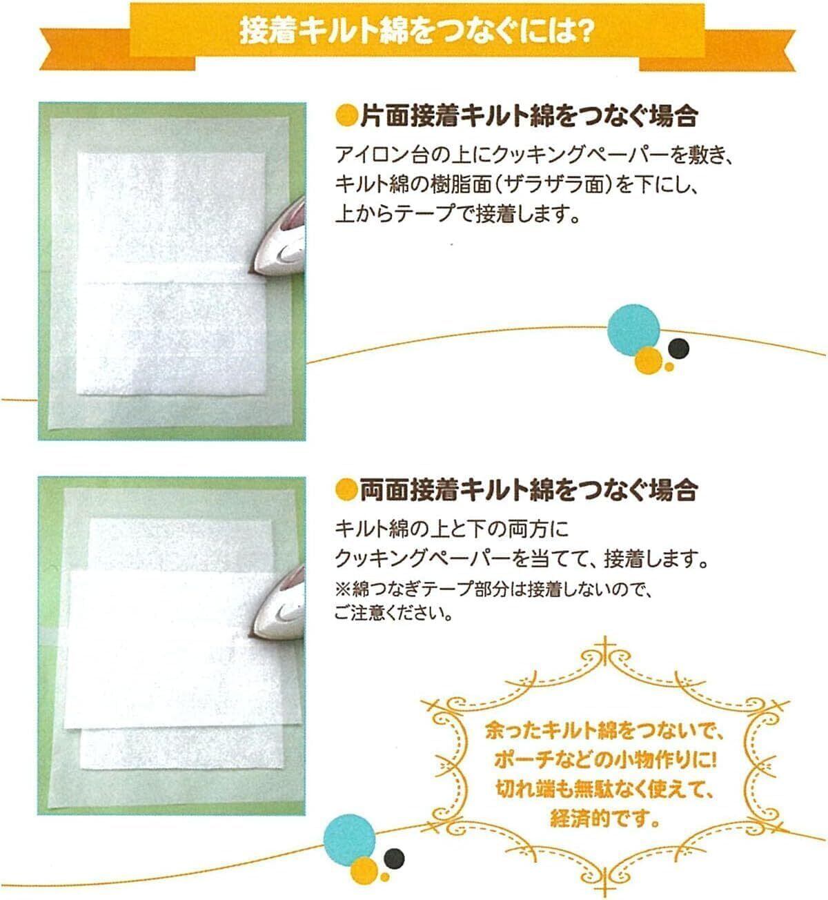 面倒なキルト綿のつなぎ合わせが簡単にできます。余ったキルト綿も無駄なく使える便利なテープです。