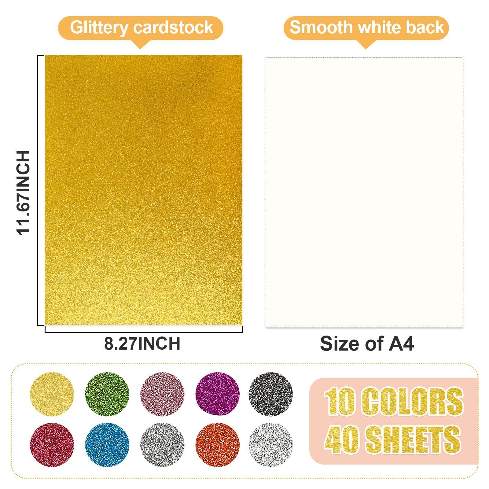 SBYURE グリッターカードストックペーパー、40枚 スパークルシャイニー クラフトペーパー プレミアム A4 グリッターペーパー マルチカラー レインボー グリッター カードストック DIY パーティー装飾 スクラップブック用、10色 250gms 片面