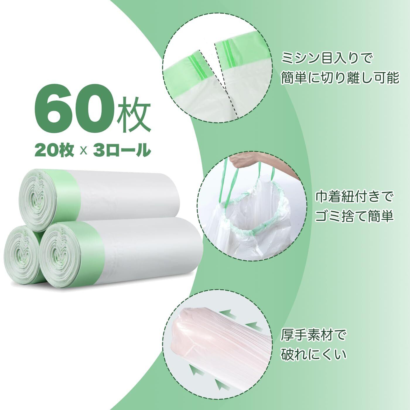ごみ袋 猫 自動トイレ 交換用 60枚 55×45cm 多くの自動猫トイレに対応 自動ネコトイレ専用ゴミ袋 巾着タイプ TOTOSHASHA(20枚×3ロール)