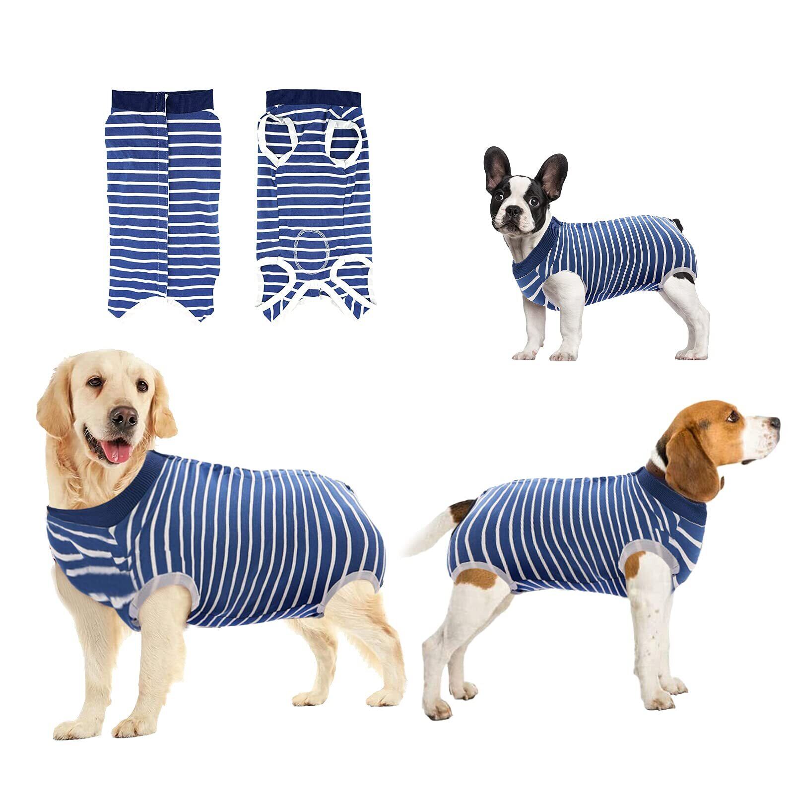 術後ウェア 犬のための回復スーツ 傷口保護 傷舐め防止 皮膚保護 避妊 離乳 不妊手術 ボタンタイプ 雄雌兼用 (XL, 青と白のストライプ)