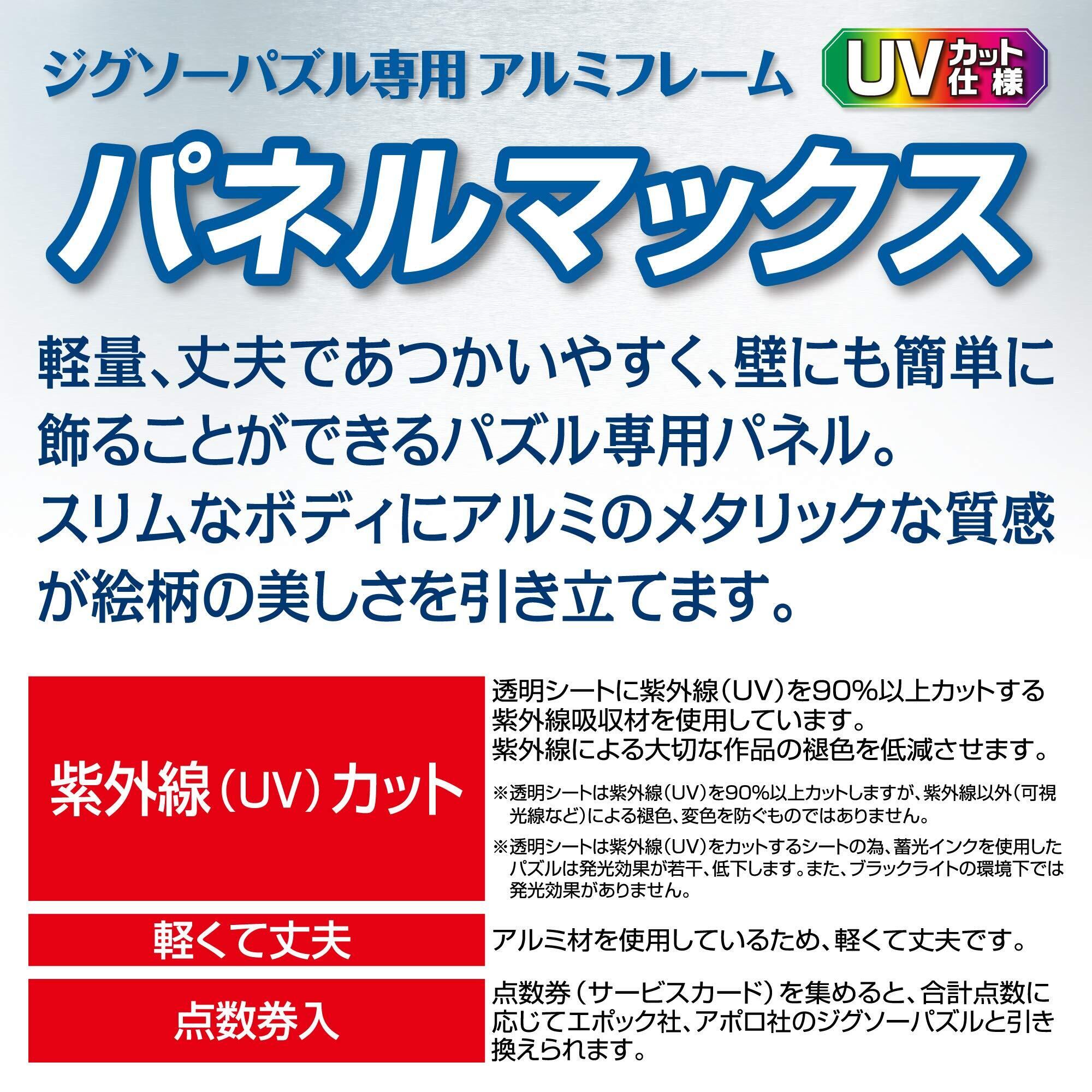 ジグソーパズルの褪色を防ぐUVカット仕様。