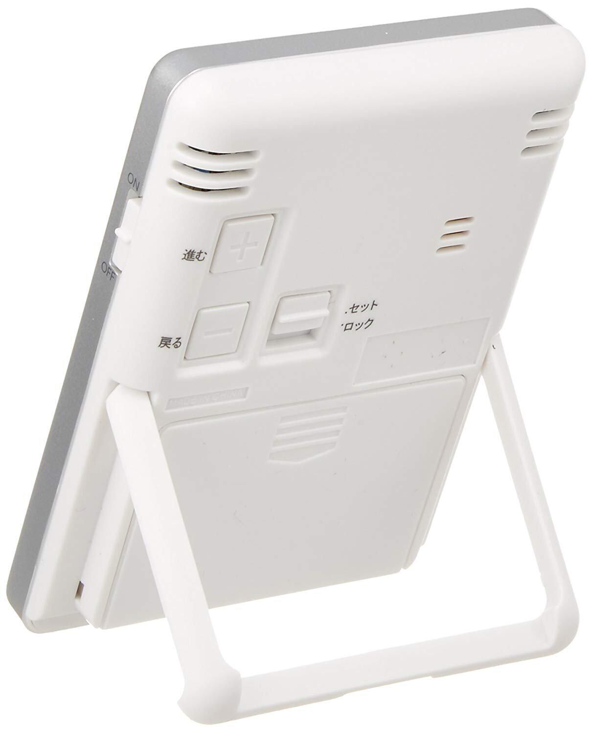 機能:電子音アラーム(ダンダントーンアラーム:4段階)/スヌーズ機能/アラームオートストップ機能(約5分間)/アラームモニター機能/2099年までのフルオートカレンダー/温湿度表示(温度測定範囲:0~40℃ 測定精度:±2℃、湿度測定範囲:25%RH~85%RH 測定精度:±8%(25℃))/12時間制・24時間制切替式/電池切れ予告機能/置用スタンドつき
