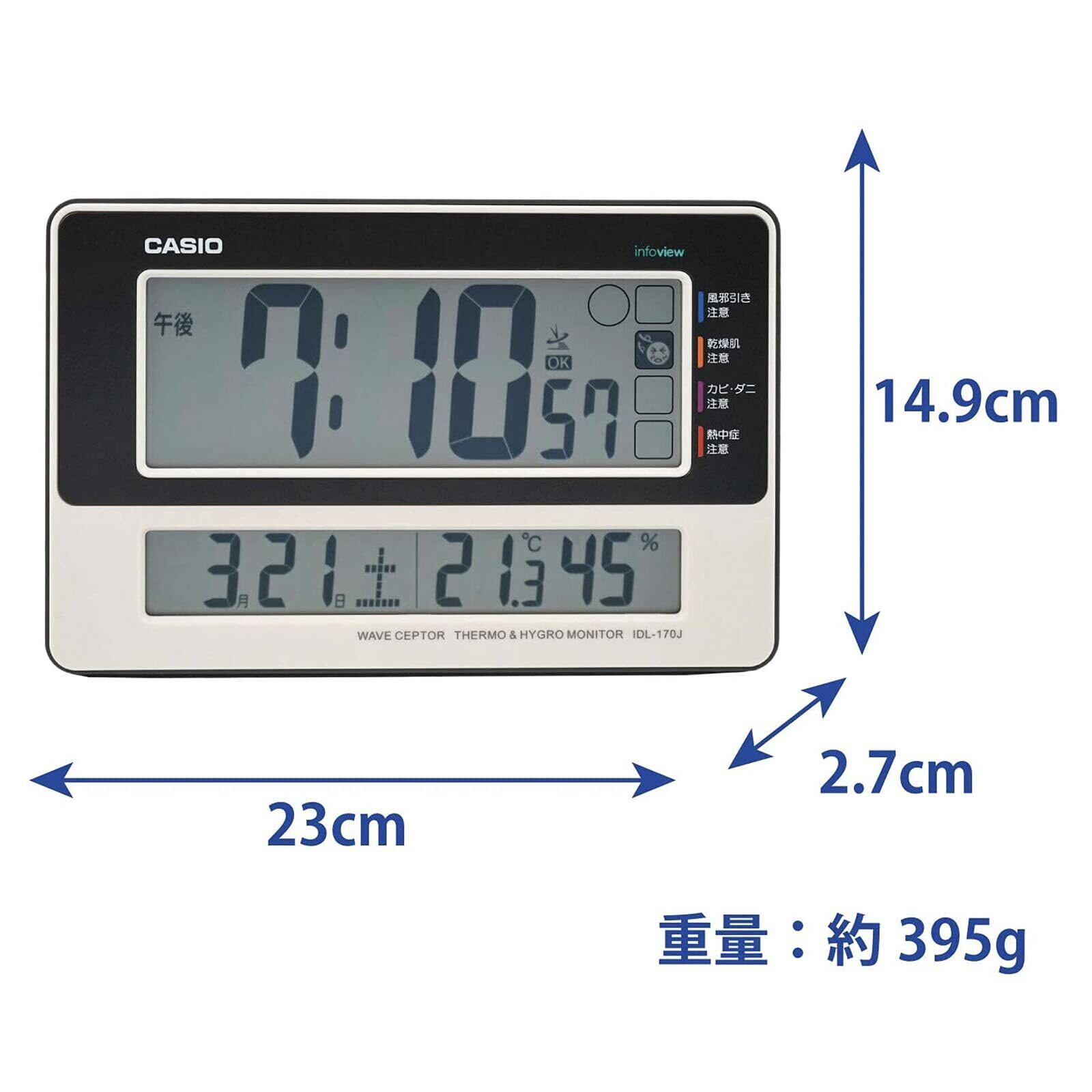 CASIO(カシオ) 置き時計 電波時計 白 デジタル 温度 湿度 カレンダー 表示 置き掛け兼用 IDL-170J-7JF