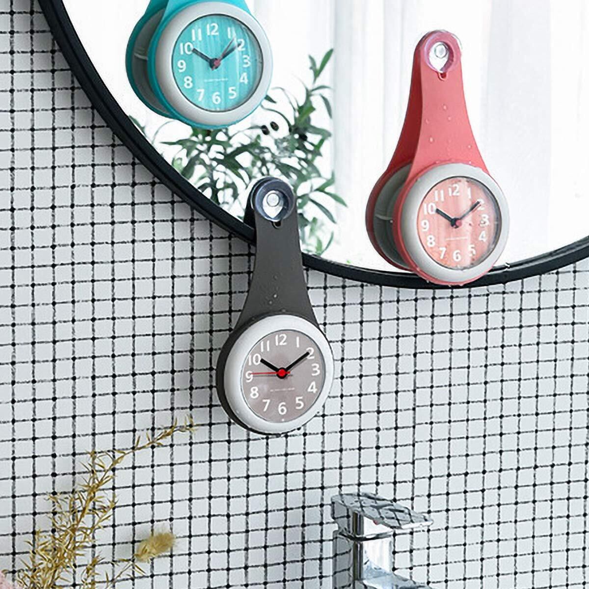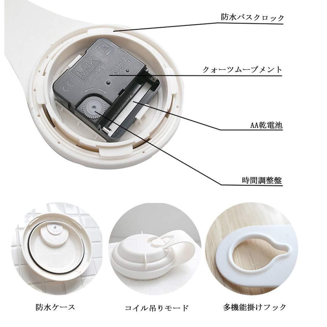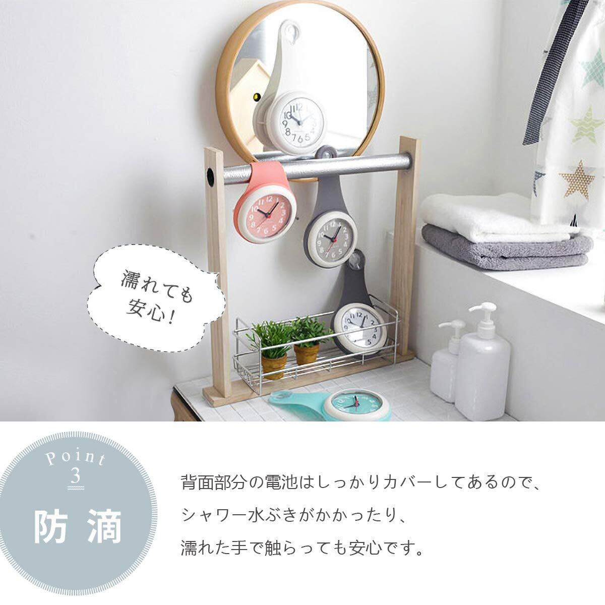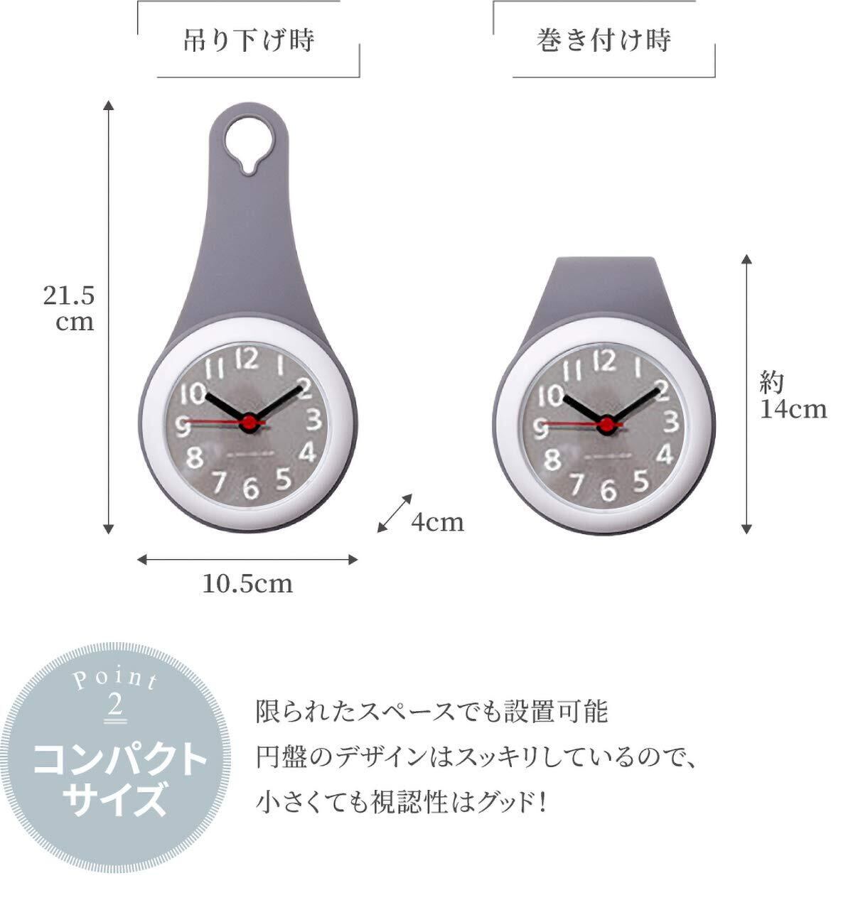 グレー バスルーム時計 防水クロック 掛け時計 ウォールクロック 吸盤付き 防水 静音 浴室 キッチン お風呂 家庭用 おしゃれ かわいい シンプル インテリア 北欧 デザイン シャワー
