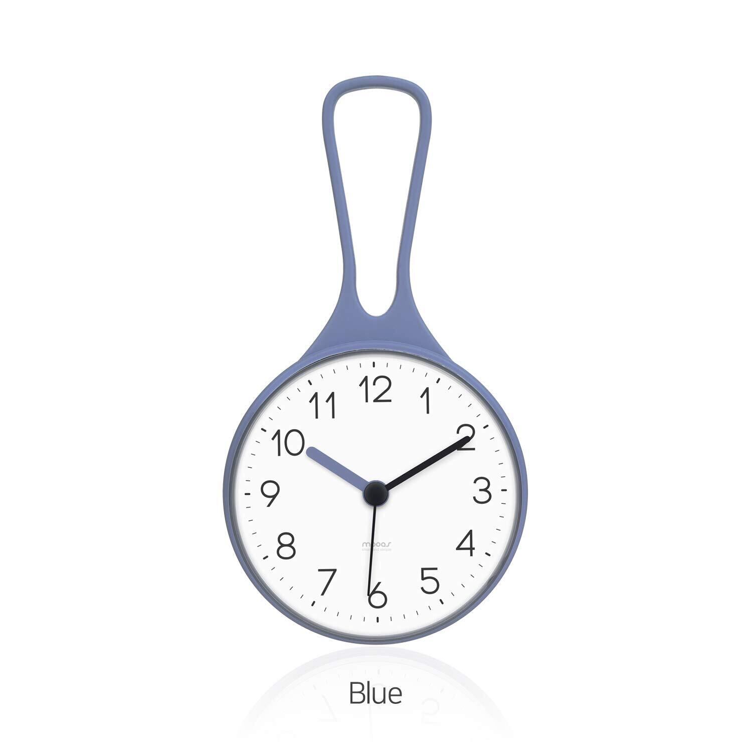 mooas ループバスルーム/防水シャワークロック、フック付き吊り下げ式、キッチンクロック、静音・電池式 (ホワイト)