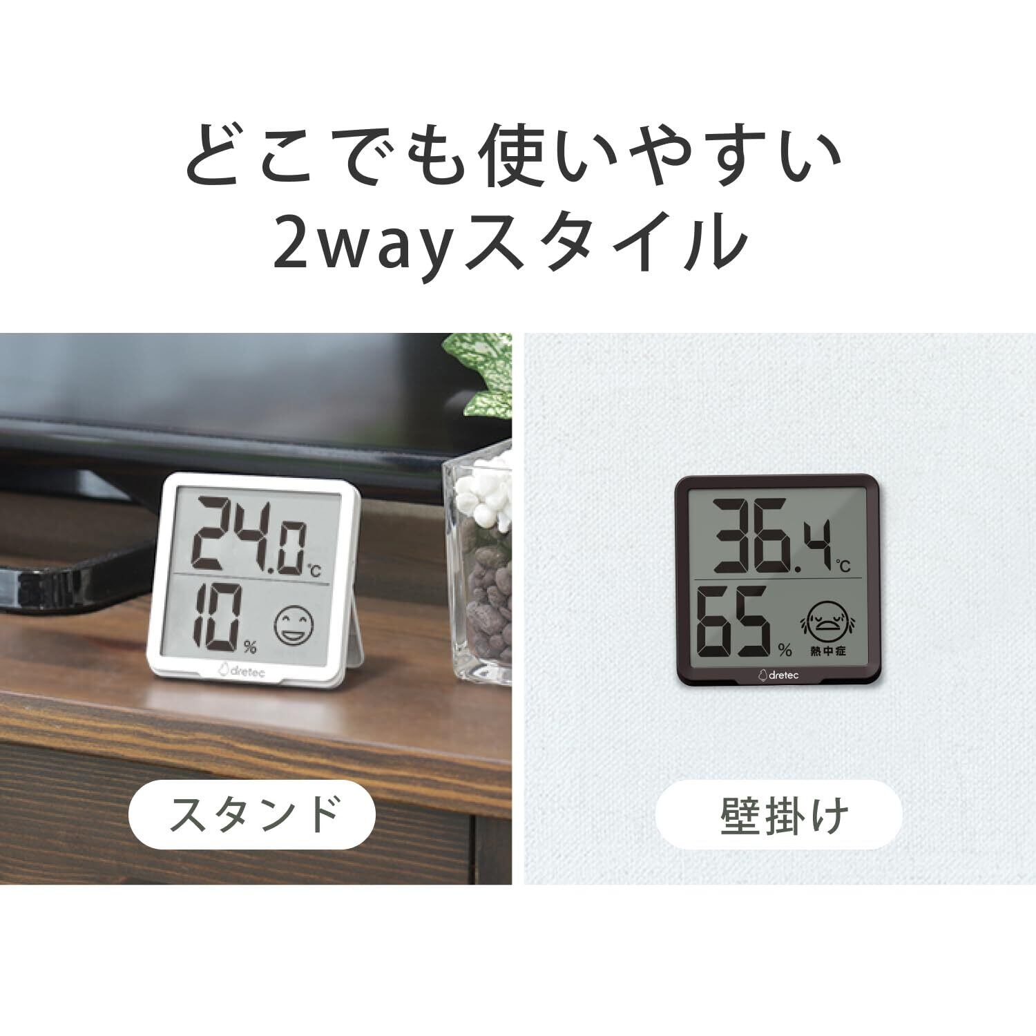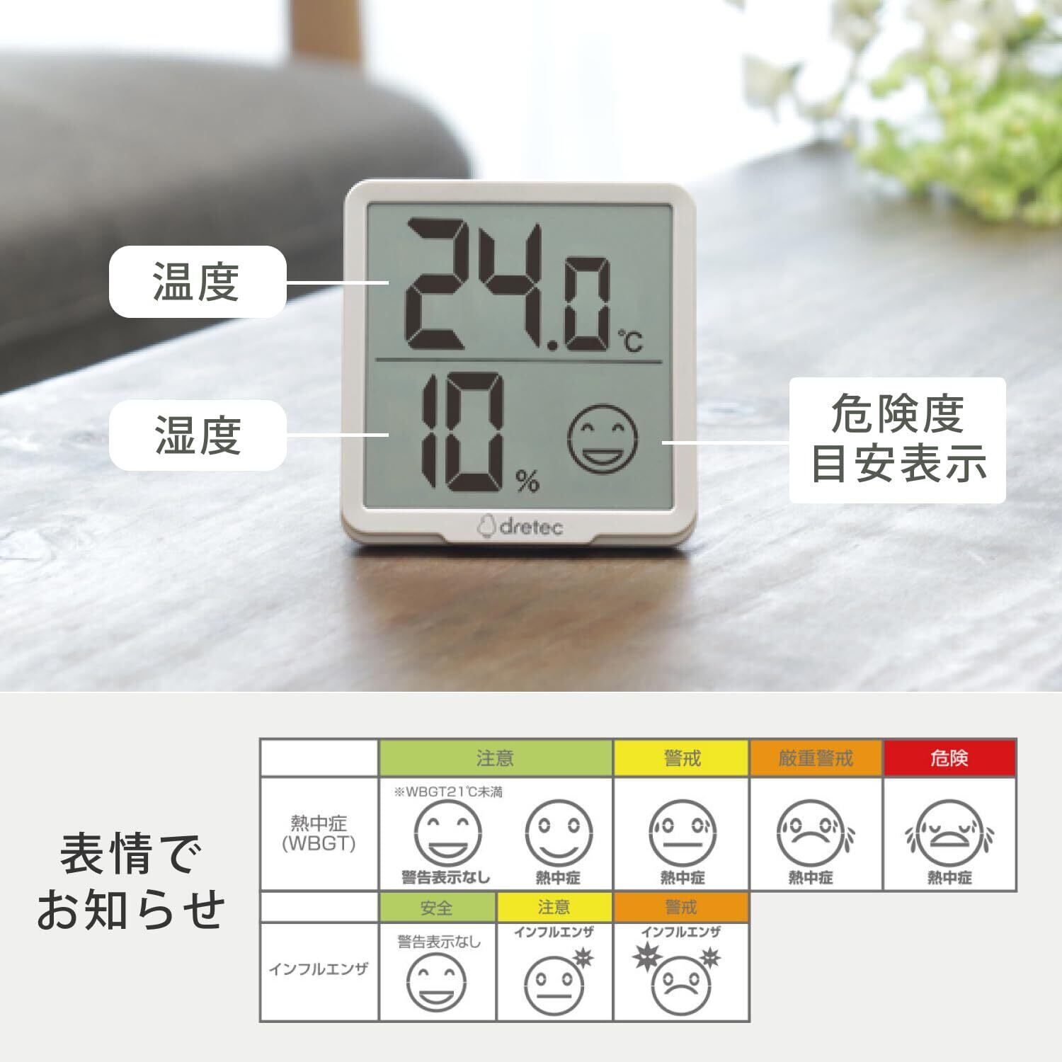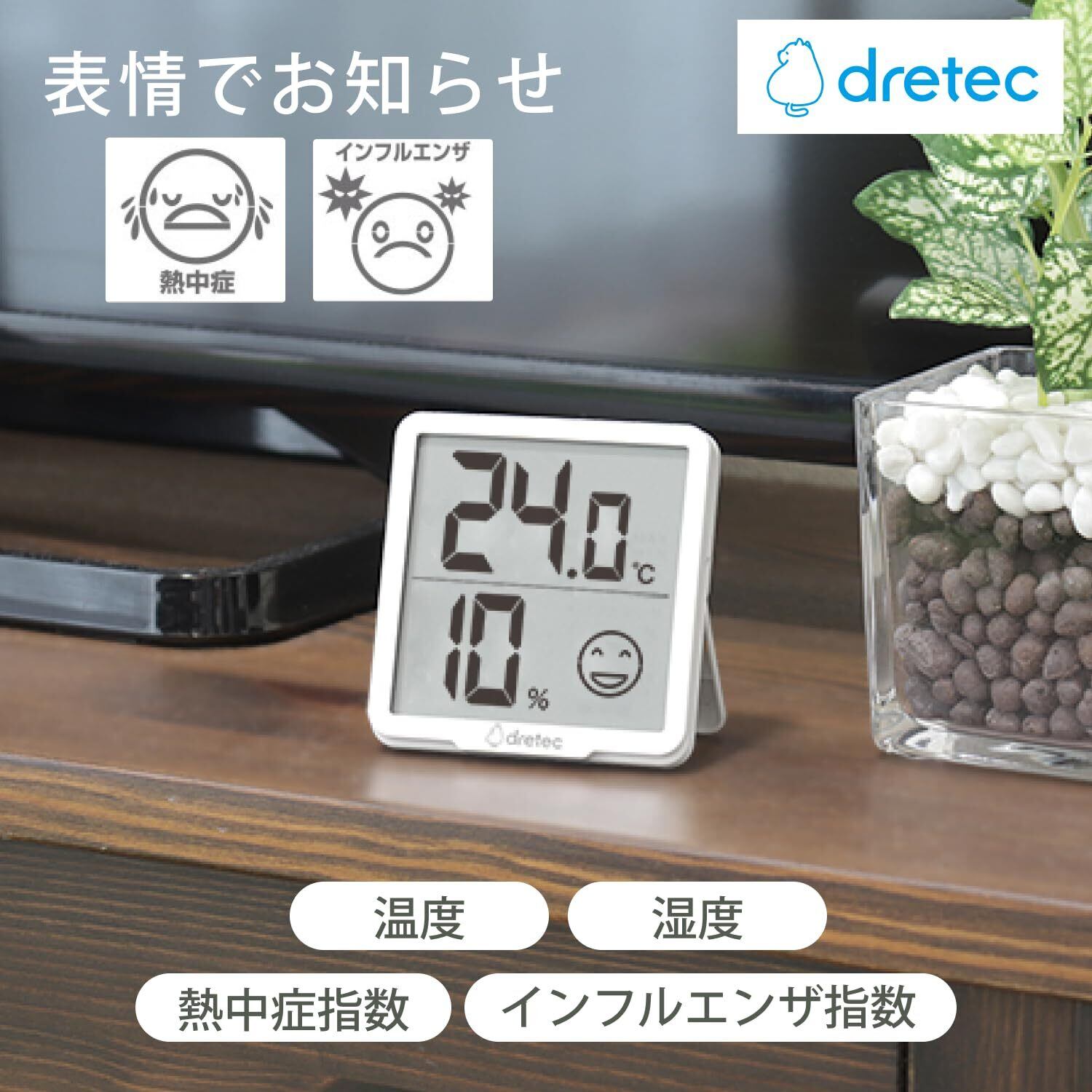 ドリテック(dretec) デジタル温湿度計 リテーモ 7cm 熱中症 インフルエンザ 表情でお知らせ 温度計 湿度計 ホワイト