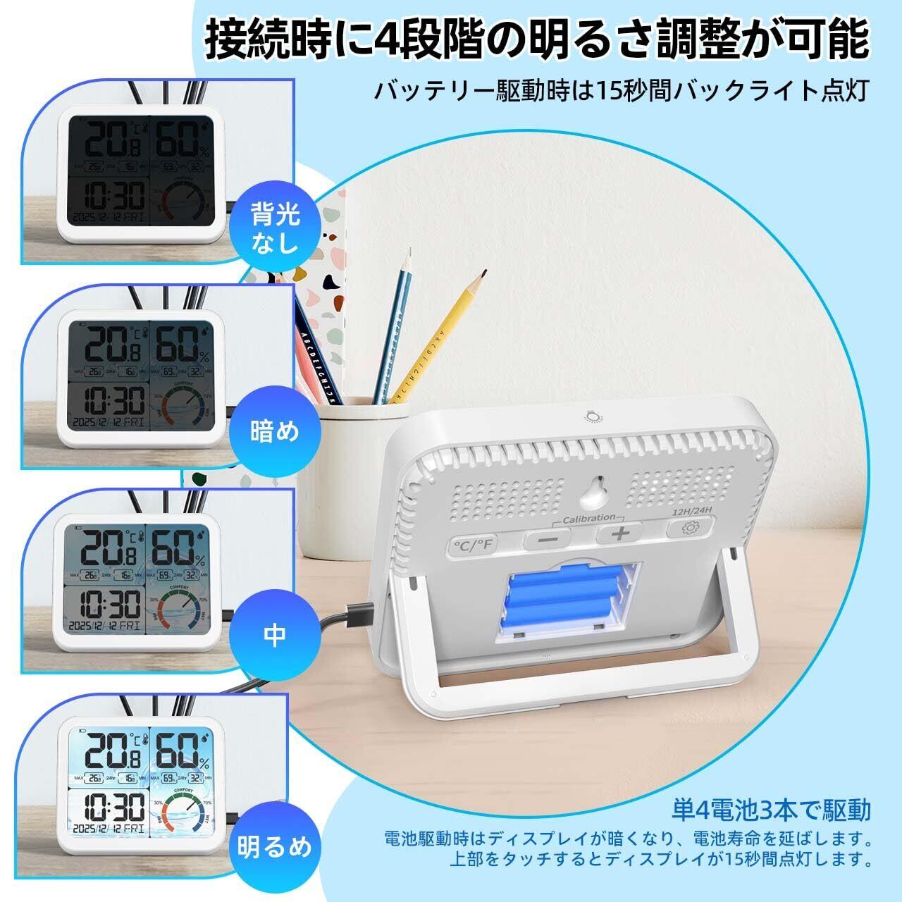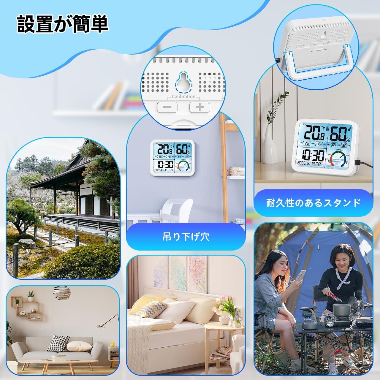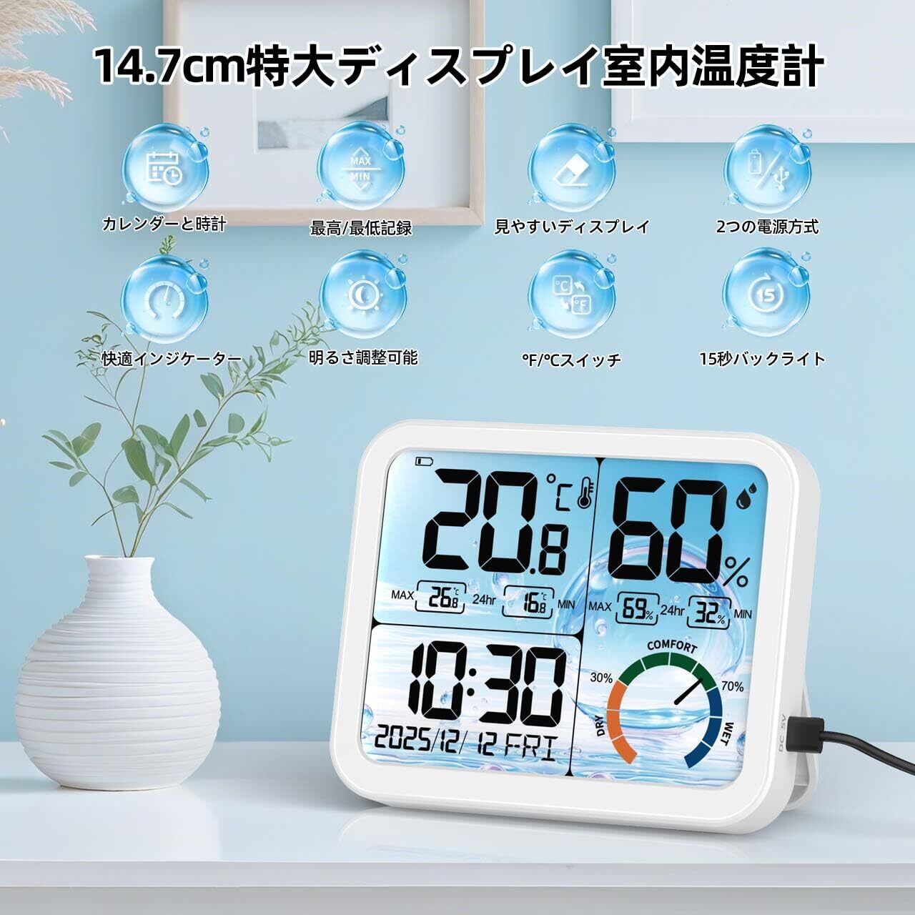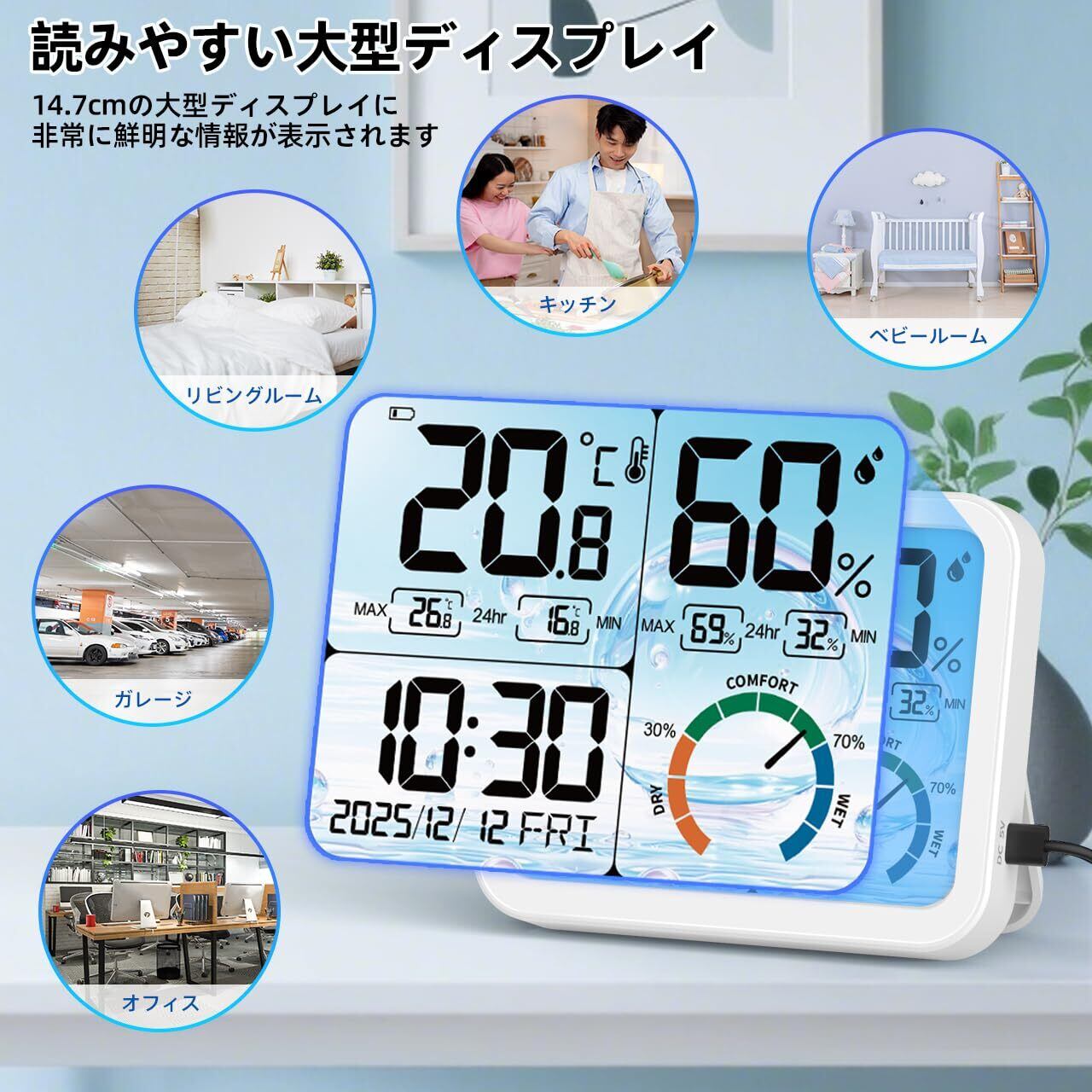 VOCOO 温湿度計時計 14.7cm大型 LCD ディスプレイ 高精度温度湿度測定 環境快適度表示 12/24 時間表示切り替え 最高最低記録機能 快適性 バックライト 日付と時計付き(白)