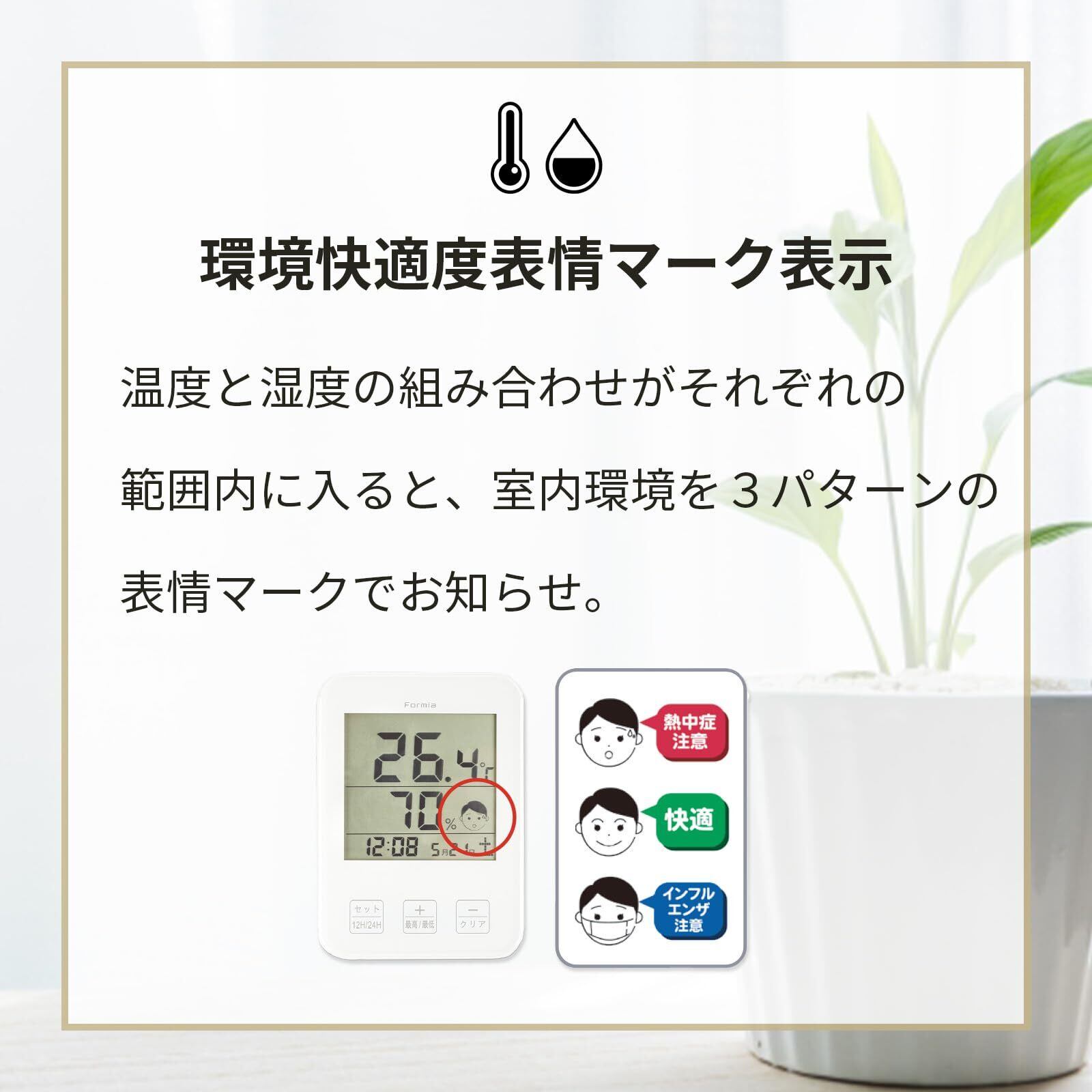 Formia(フォルミア) 温湿度計 熱中症警告アラーム 温度計 湿度計 日付 時計 卓上 目覚まし 置き掛け兼用 熱中症対策 梅雨 デジタル 保土ヶ谷電子販売 ホワイト HO-003