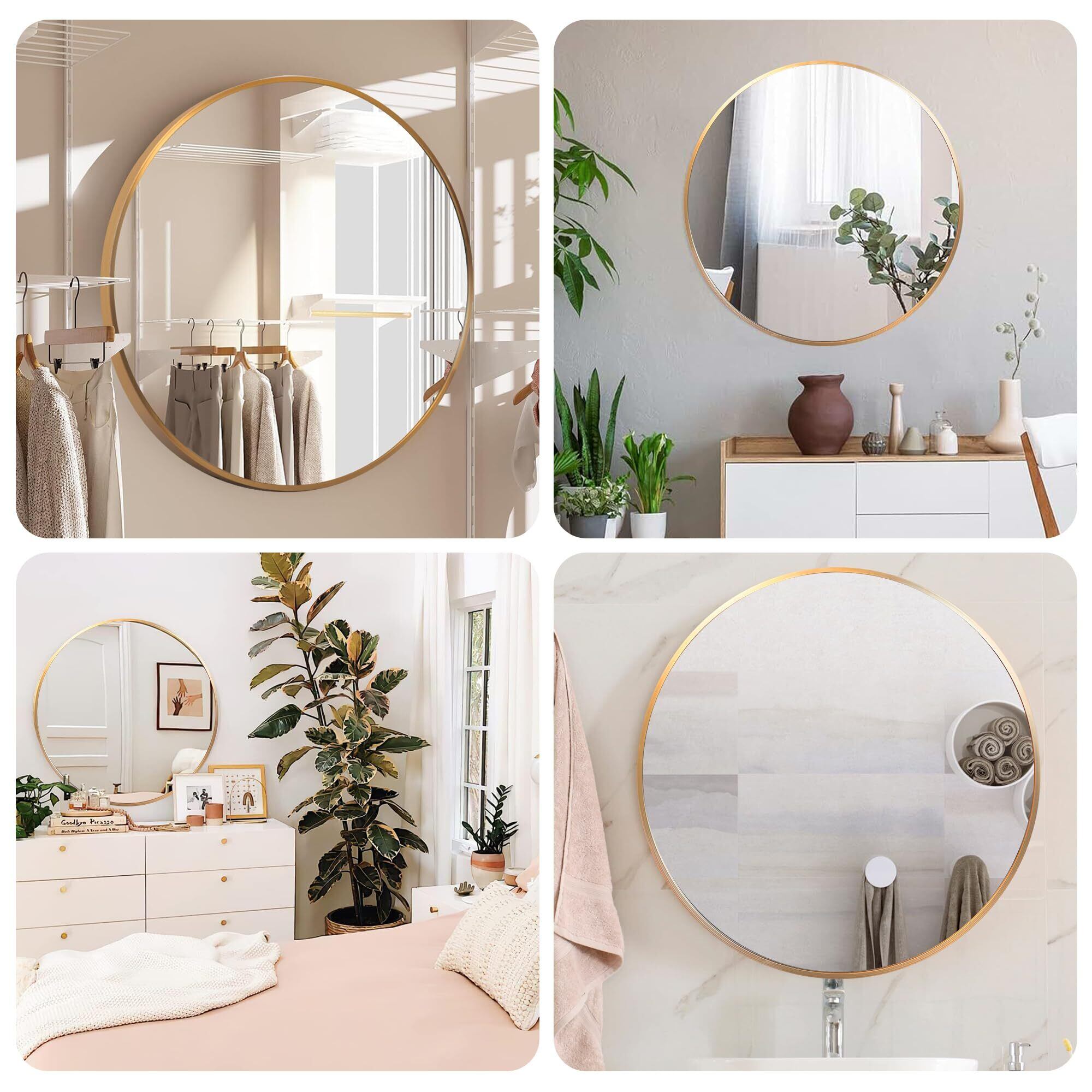 【心を込めるデザイン】高精細フロートガラスで仕上げたため、鏡面の透明度が高くて、派手なお姿や綺麗な室内レイアウトがはっきり映れます。丸い鏡の裏は鉛と銅を含まないアルミフレーム素材を使用し、バスルームのような湿度の高い環境でも使用できます。