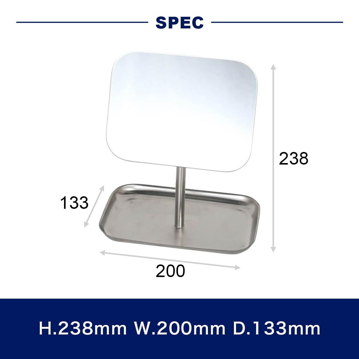 サイズ : 高さ238×幅200×奥行133mm、ミラー : 高さ135×幅180mm