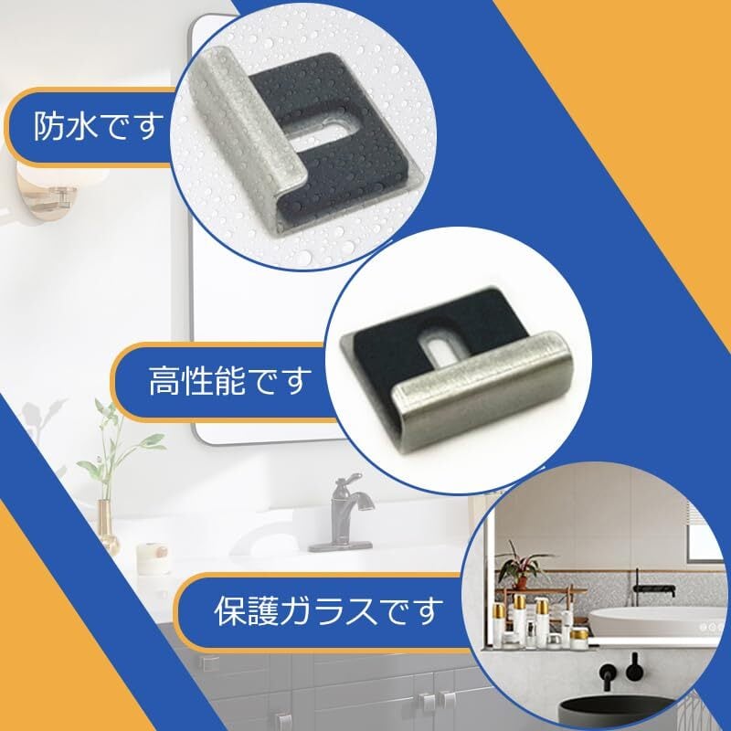 鏡 壁掛け 鏡 金具 鏡 取り付け用金具 ステンレス製 耐久性 取り付け 取り外しが簡単 浴室 トイレ その他のガラスミラークリップに最適 4本