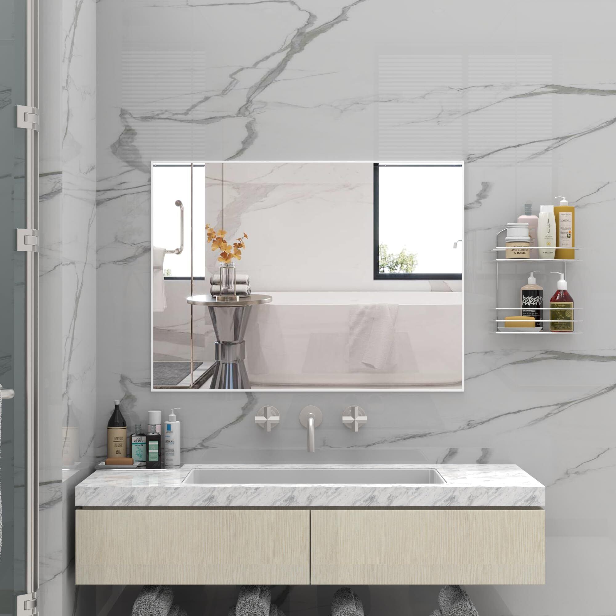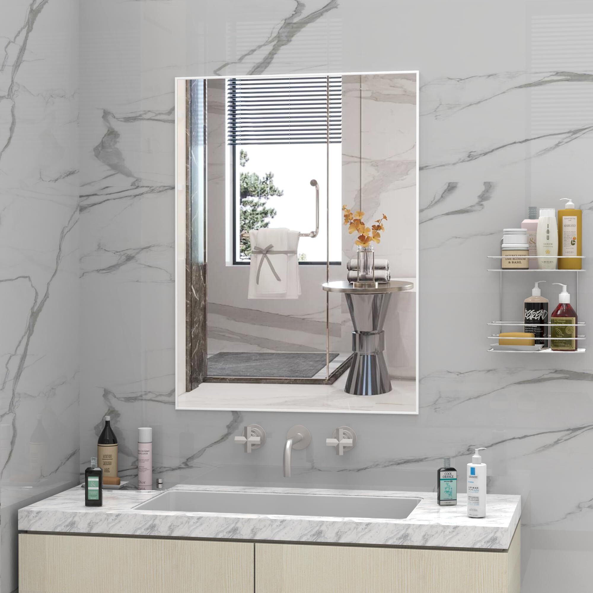 HDホワイトバスルームミラー: 長方形のミラーは明確な反射を提供し、あらゆる角度からのイメージを歪めない高い明快さのガラスから成っています。