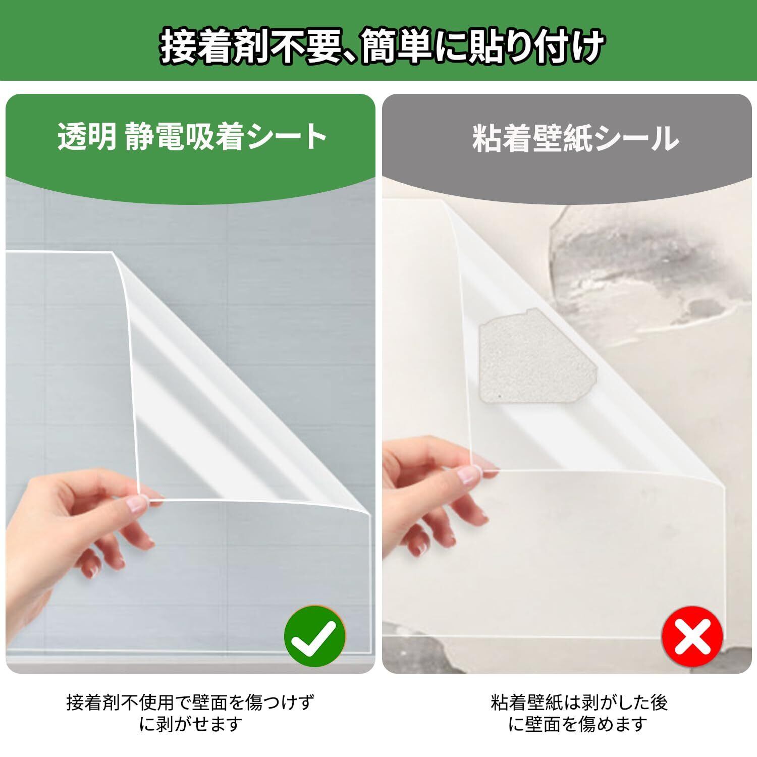 【初心者でも貼れる】:静電気吸着キッチン透明保護シートは、接着剤を使用せずに壁やタイルに自動的に吸着できます。貼り直すのも簡単ですので失敗してもやり直しが出来ます。汚れた時もサッと拭くだけで綺麗になります。