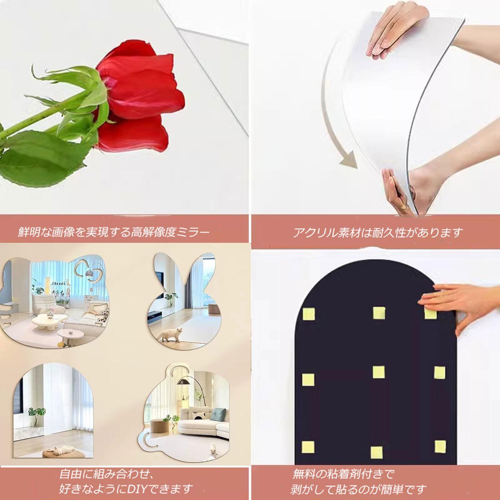 Tumecos 壁掛け、割れない鏡、縦型、貼り付けミラー、3Dメイク、柔らかい、粘着性、アクリル素材、室内装飾、取り付け簡単、軽量、穴あけ不要、飛散防止ガラス、飛散防止、省スペース、ウォールステッカー、おしゃれ、滑らかな壁に最適、不規則、かわいい、漫画、高精細フレームレス、環境に優しい、丈夫で耐久性があります-花の形