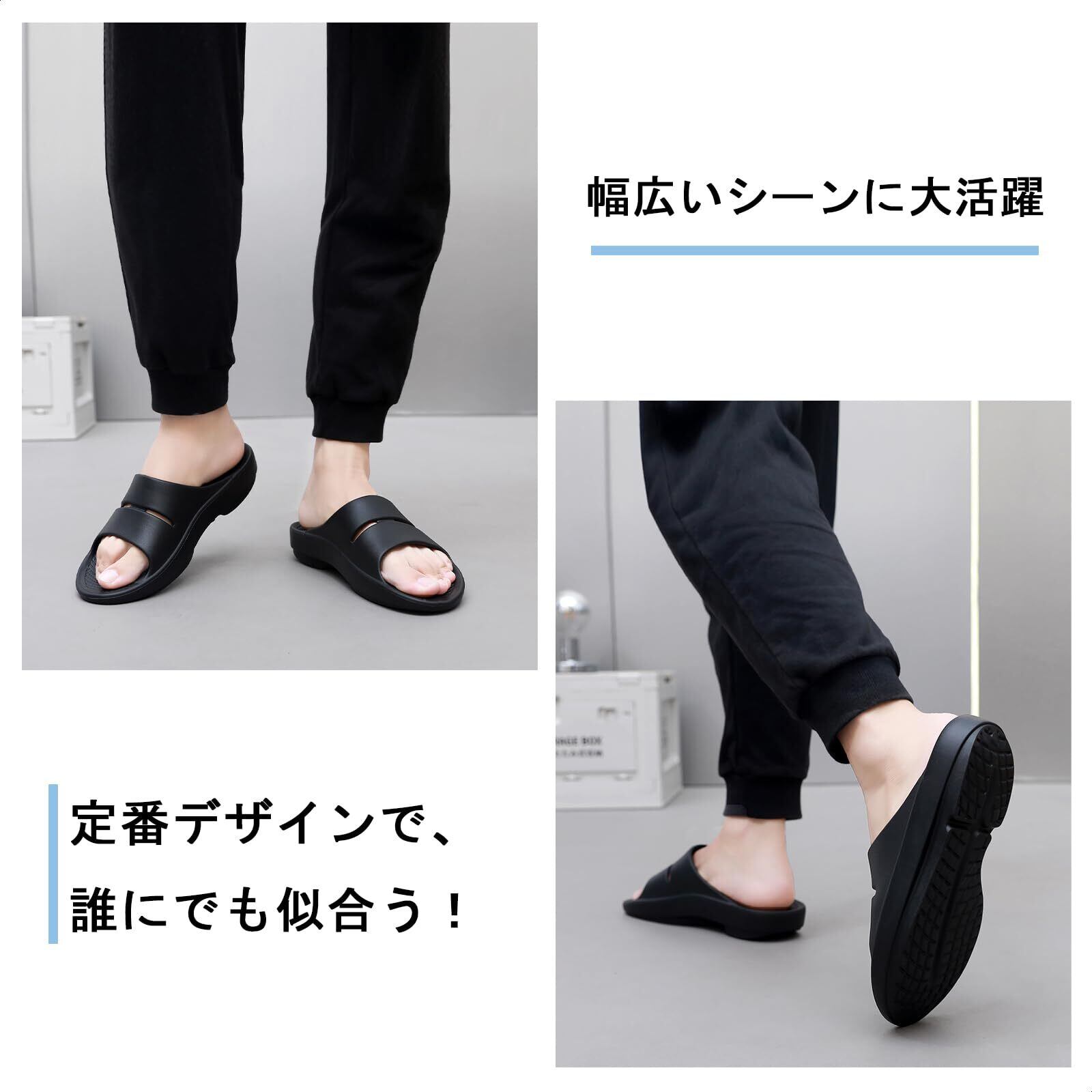 「足の休息に特化したリフレッシュサンダル」伸縮性と弾力性を持ち合わせたEVA素材を使用しており履きやすさを徹底追求しました。内履き、外履き、季節関係なく使用することができます。