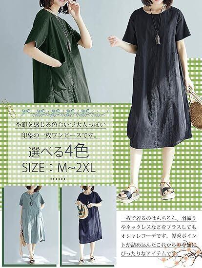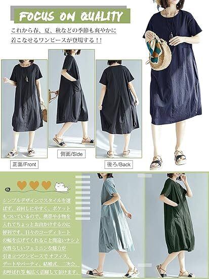 レディース ワンピース 無地 半袖 春 夏 透けないシリーズ 大きいサイズ デイリーに大活躍 癒され系 森ガール おしゃれ ファッション ナチュラル シンプル 体型カバー 着痩