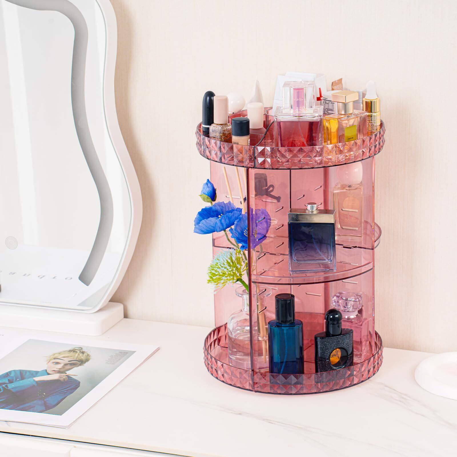 【360°回転式メイクアップオーガナイザー】このメイクアップオーガナイザーボックスは安定した回転ベースを持っているため、360°静かにスムーズに回転し、数秒で簡単に化粧品を取り出すことができます。バニティに最適なメイクアップオーガナイザーです。