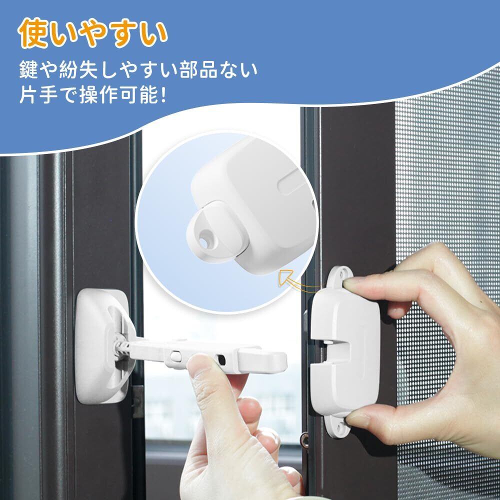 使いやすい:ダブルキーを押してロックを解除すると、窓を自由に開閉できます。鍵や紛失しやすい部品なしのシンプル設計を採用します。滑りボタンを押したまま、窓を押し下げるか引き上げて、窓の隙間を調整します。大人なら簡単に使用できますが、お子様は使いにくいです。