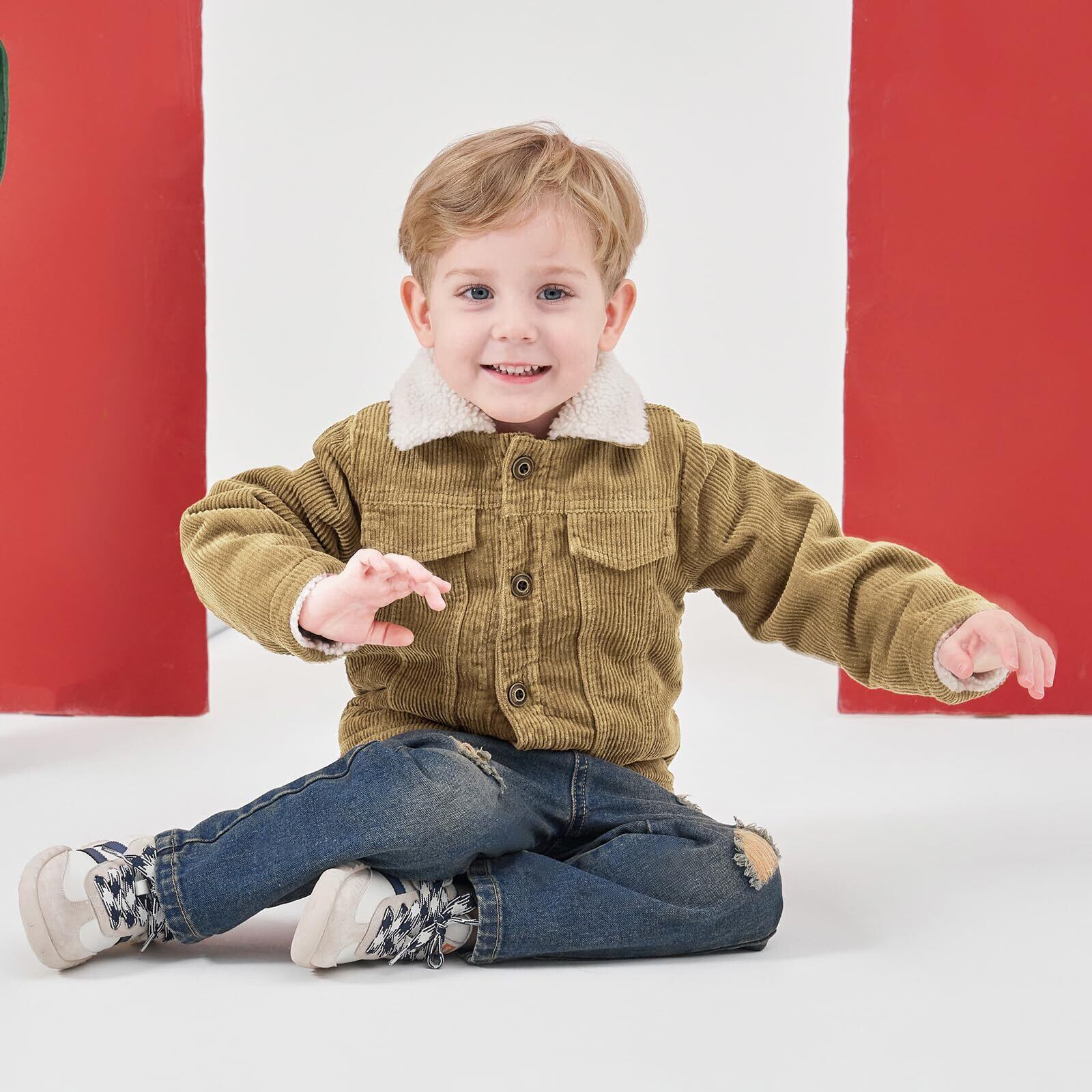 [Volunboy] ベビー アウター 冬 男の子 裏ボア 暖かい コーデュロイ コート ジャケット 長袖 厚手 防風 防寒 保温 秋冬