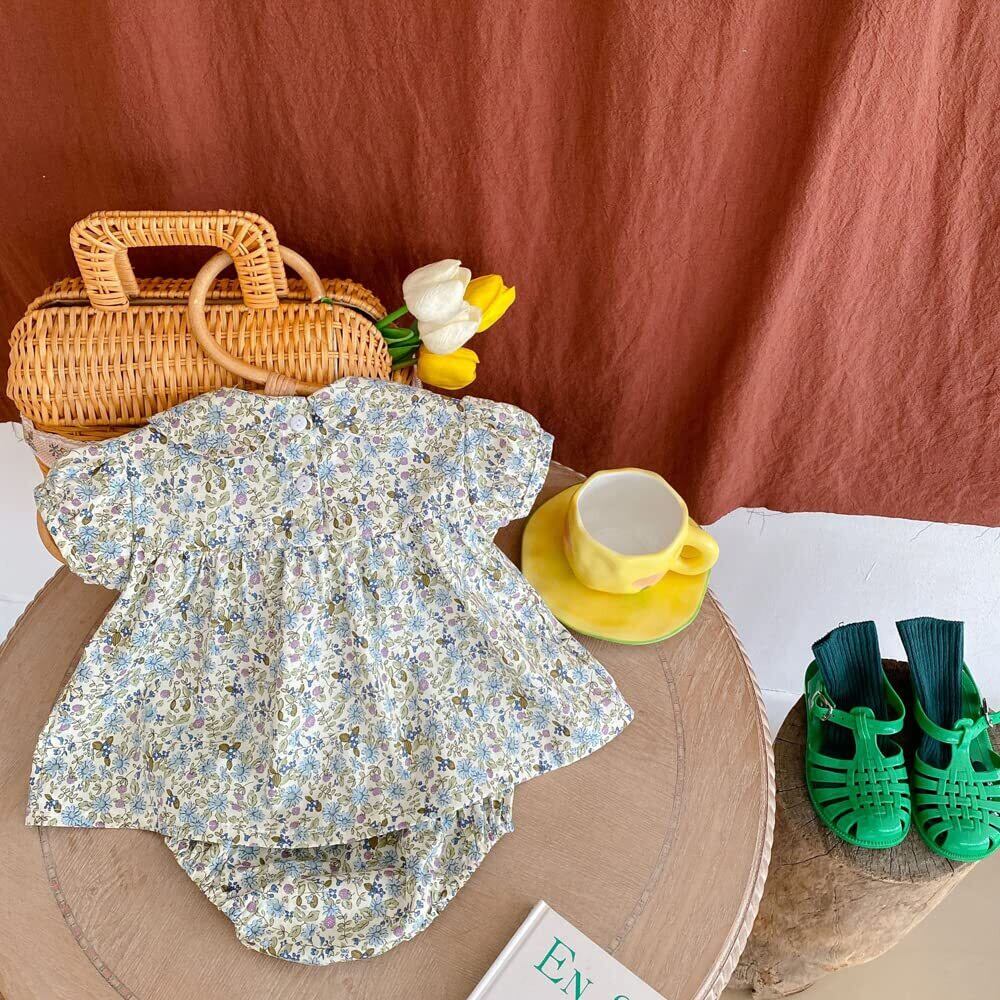 [Jaydyequ] ベビー服子供服女の子洋服夏半袖ワンピースショーツパンツガールズカジュアル普段着お宮参り発表会七五三バースデー贈り物ランの花柄