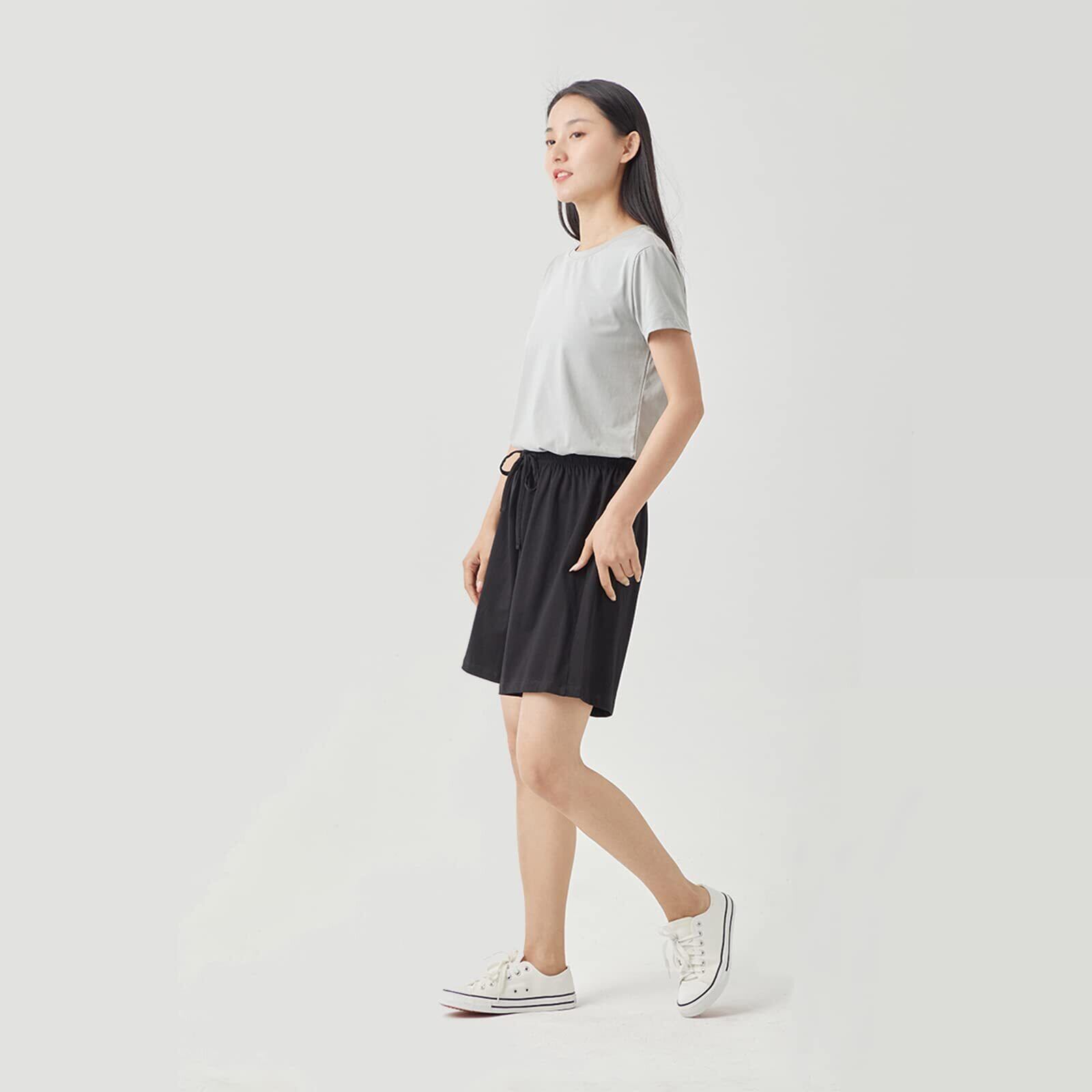 jinghuiyue ショートパンツ レディース 夏 綿 無地 薄手 ゴム 短パン ゆったり 普段着 部屋着