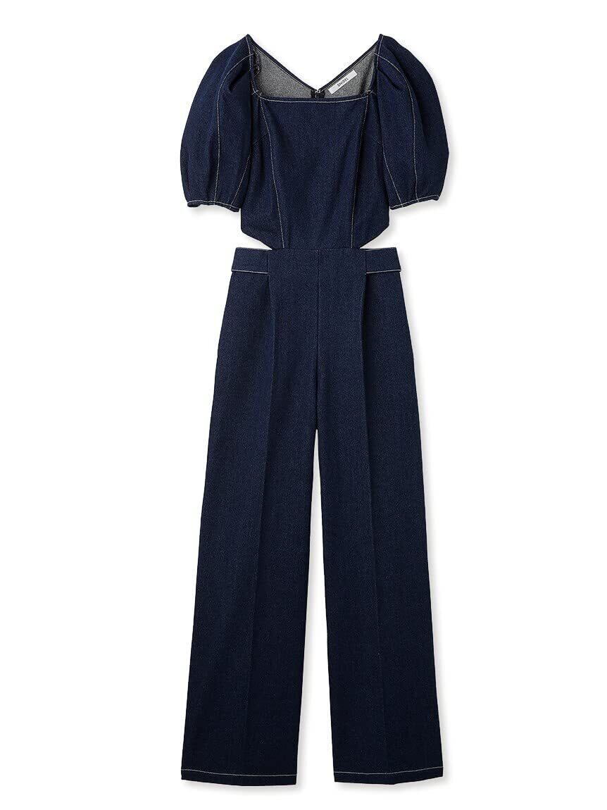 大胆なウエストオープンディテールでトレンド感を演出したオールインワン。細かい切り替えでデザイン性をプラスし、女性らしいシルエットになるようにこだわった1着。ふんわりとしたボリュームスリーブが華やかさをぐっと高めてくれます。ウエストのベルト部分には釦を2個あしらっているのでサイズの調整も可能です。