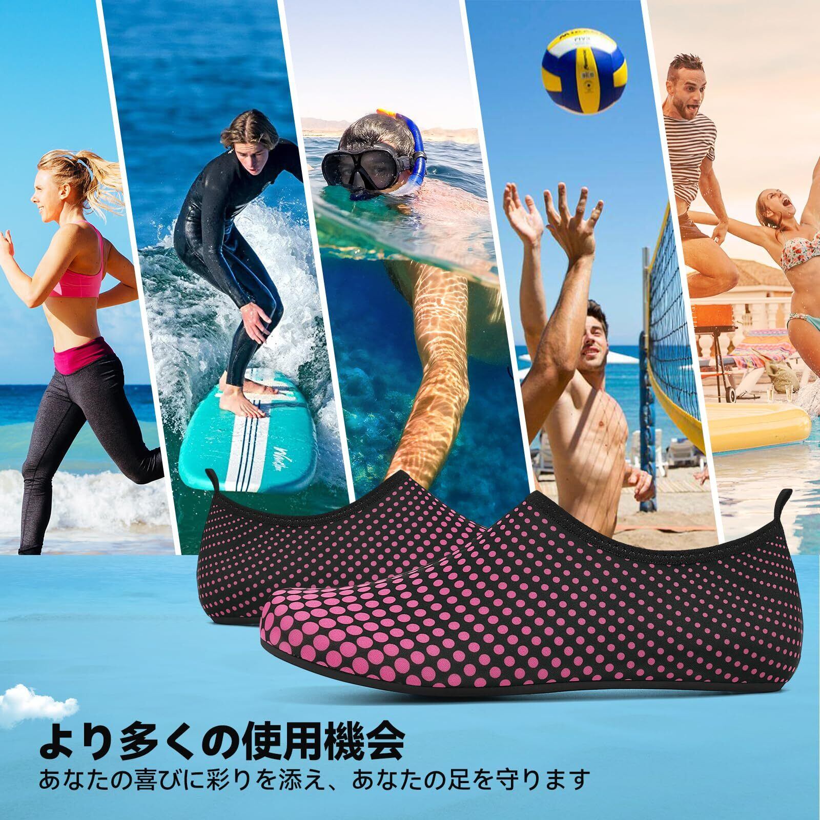 アッパー:ウォーターシューズのアッパーは、通気性があり速乾性のあるダイビング素材で作られています。ビーチシューズは、履いたときに柔らかく、通気性があり、肌のように薄く感じます