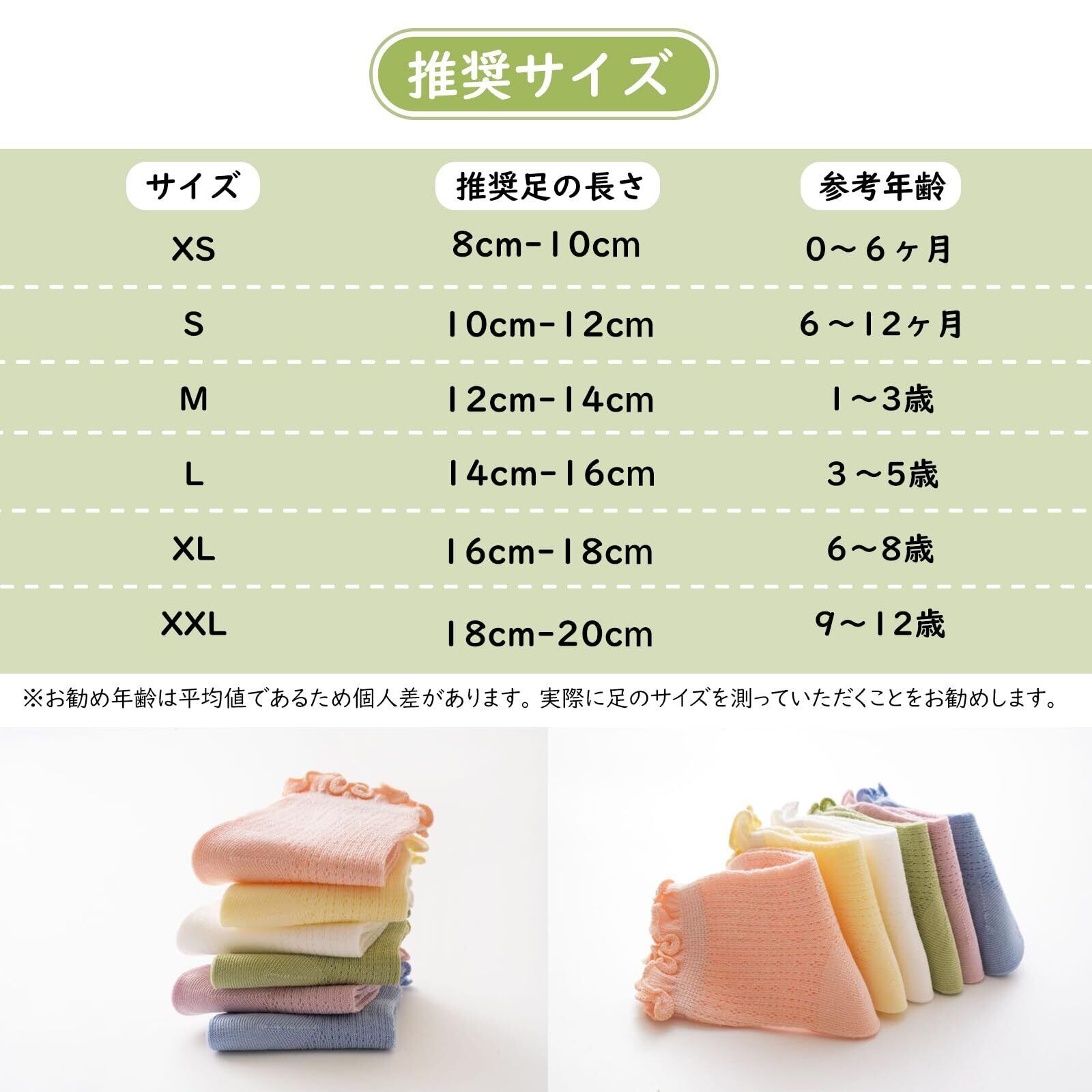 サイズ: 0-6ヶ月/8-10cm: 6ヶ月-12ヶ月/10-12cm: 1-3歳/12-14cm: 3-5歳/14-16cm: 6-8歳/16-18cm: 9-12歳/18-20cm。