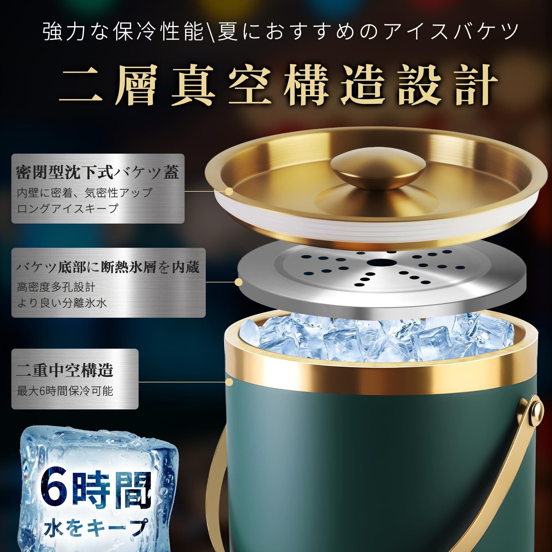 アイスペール シリコン密封リング付きアイスバケット 二重壁真空断熱 厚手304ステンレス鋼 (グリーン, 2L)