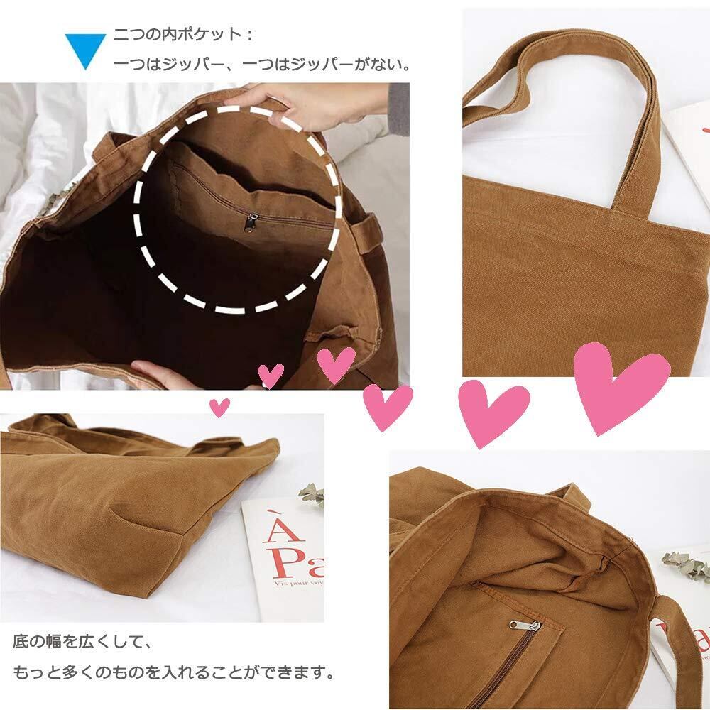 [Volsha] トートバック キャンバス, A4 大容量 トート キャンバス ショルダーバッグ 無地 キャンパストート帆布 男女兼用 通勤通学