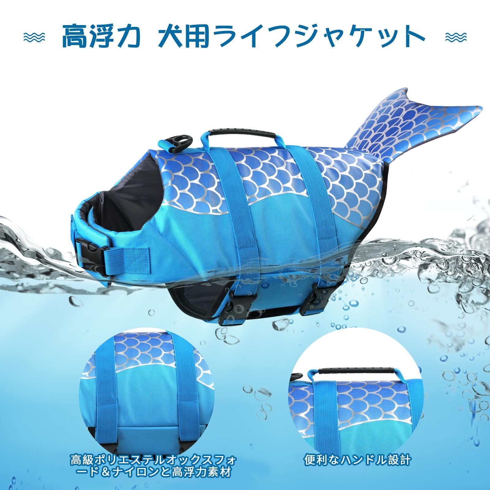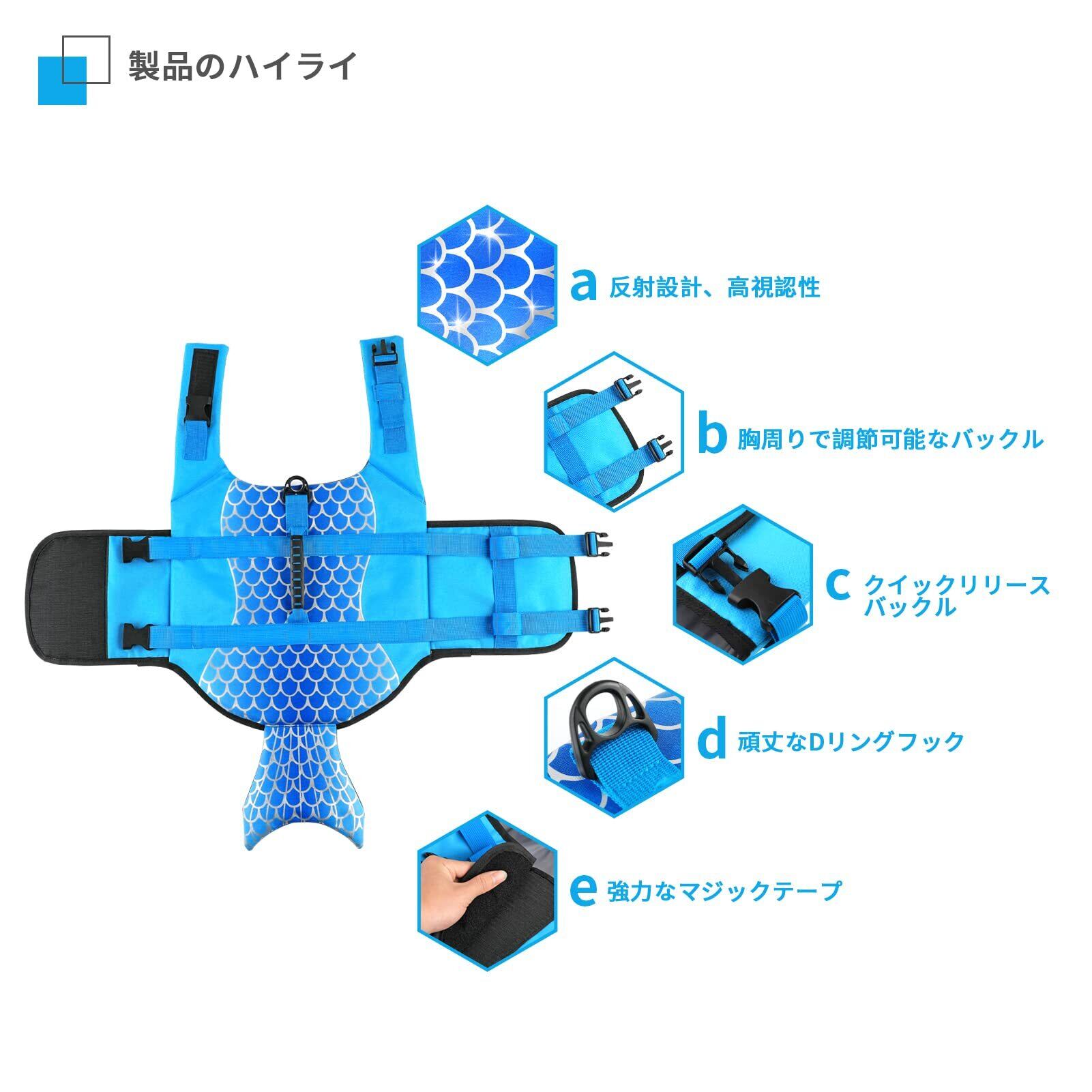ペット 犬用ライフジャケット 水泳救命胴衣 小型犬 中型犬 大型犬 猫用 救急服 水遊び用 運動用 犬 水泳必需品 犬の安全を守る 保護 高浮力 反射ライン 干しやすい (きらきら人魚姫 ブルー, S)
