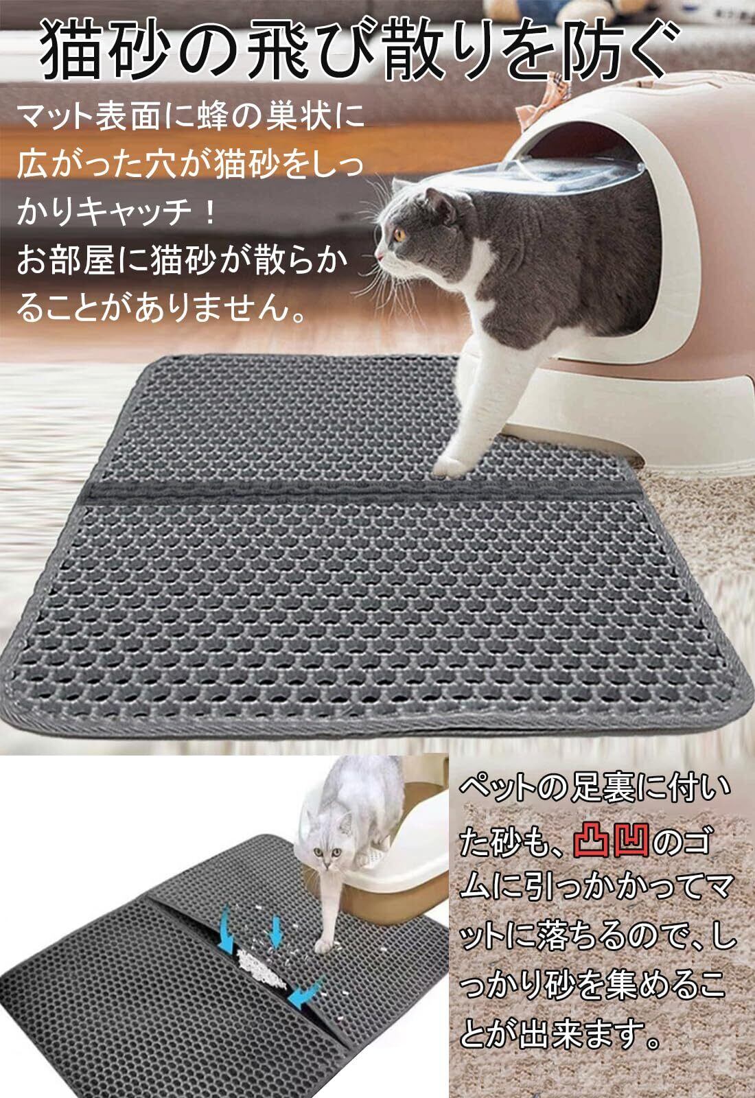 猫砂 マット 砂取りマット 猫砂飛び散り防止マット 猫用 猫砂取りマット 二重構造 滑り止めマット 水洗い 洗える 清潔簡単 室内をキレイに保持 EVA素材 猫トイレ用品 ペット用品