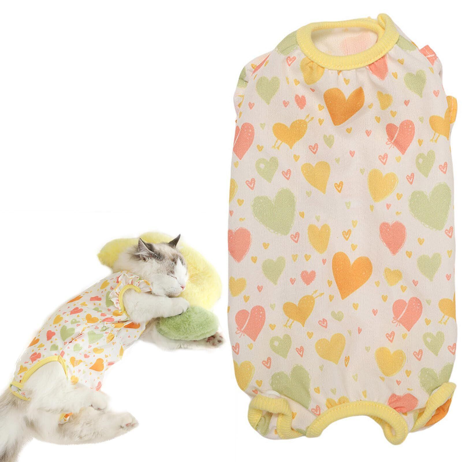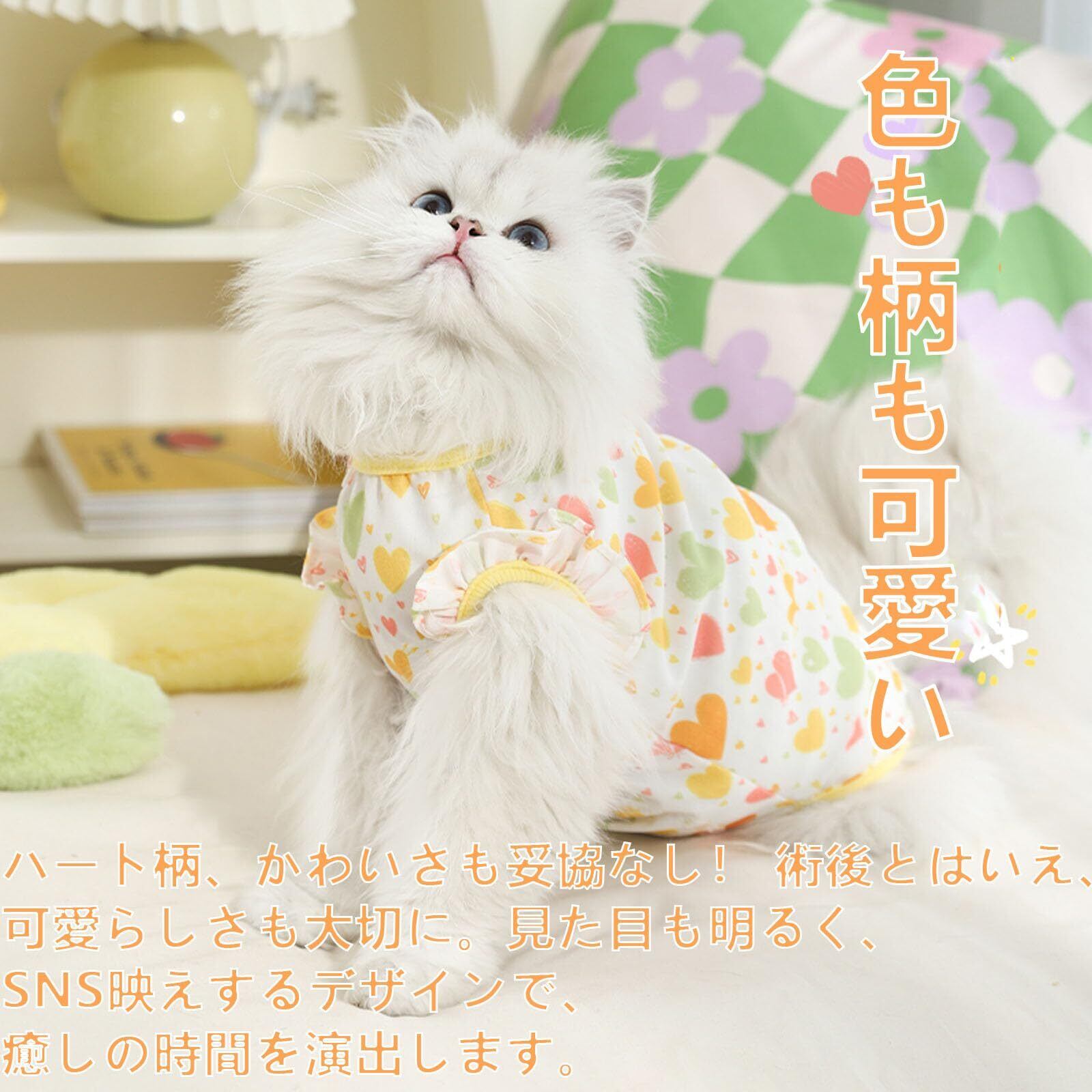 猫 術後服 メス オス猫 服 舐め防止 傷口保護 引っ掻き防止犬 術後服 女の子 男の子犬 介護用品 犬服 春夏猫 ロンパース かわいいハート型猫用術後ウェア猫服 離乳服 ねこの服 ストレス軽減 着脱が容易 抜け毛対策ペット用品(XS-胸囲35cm 背丈24cm(推奨体重1.5~2kg))