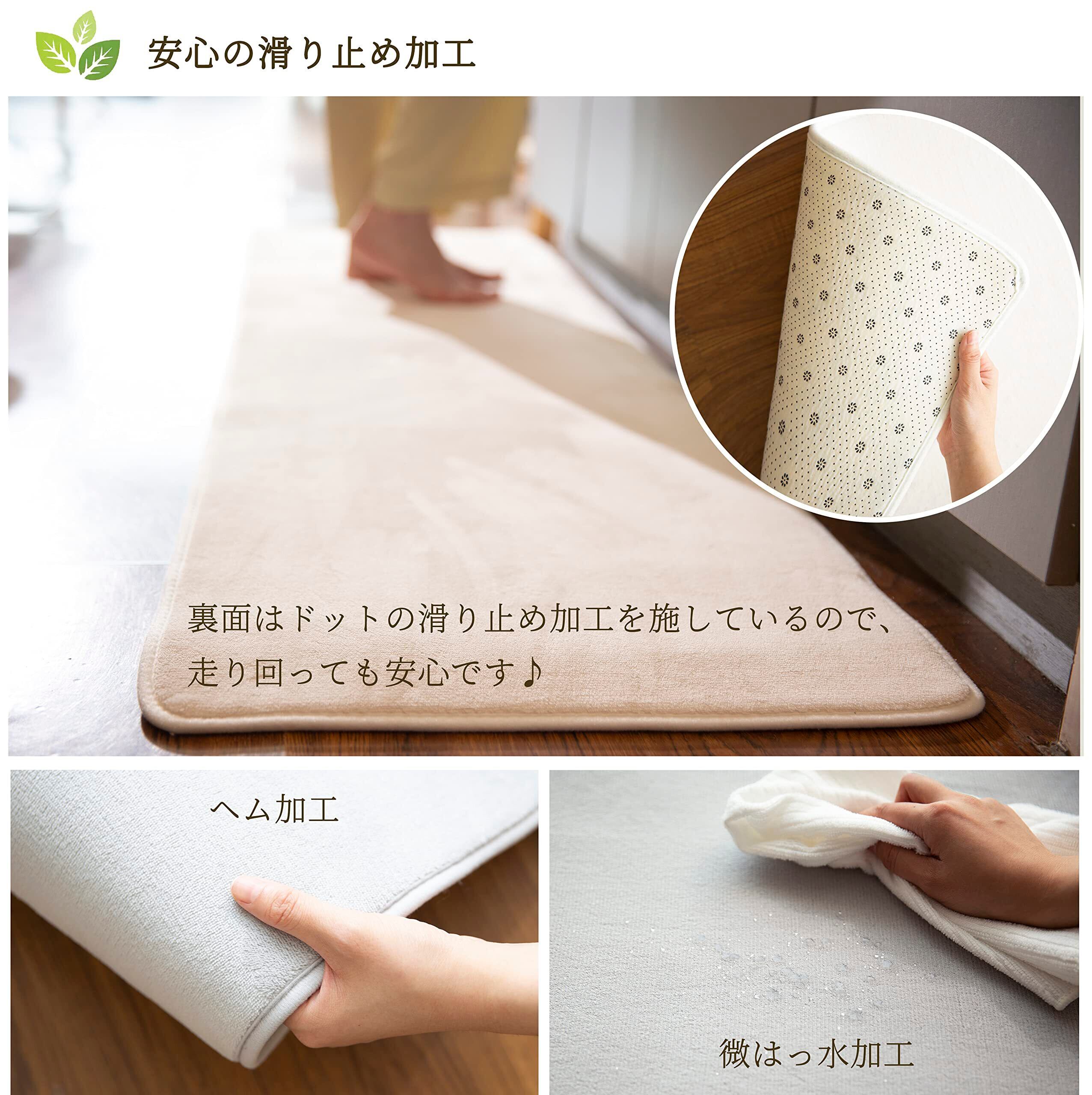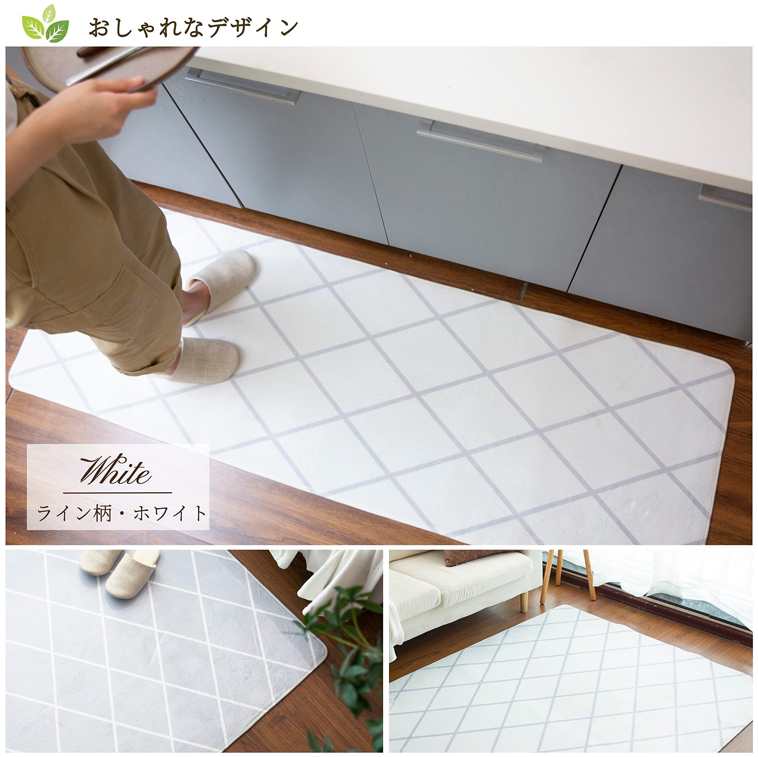 キッチンマット 60×240㎝ 台所マット 微はっ水 ホットカーペット対応 フランネル ふわふわ 北欧 ライン柄・ホワイト