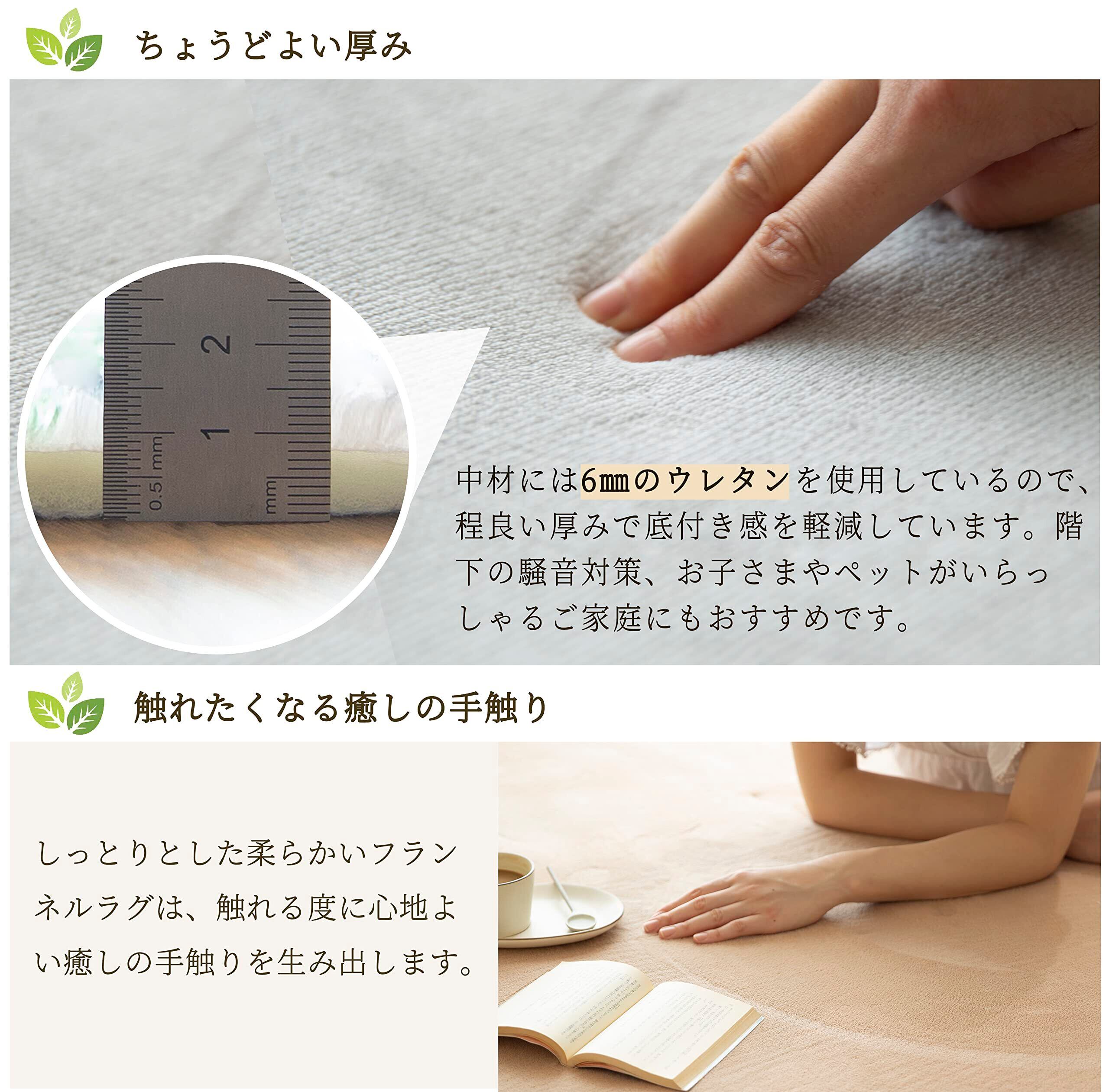 フランネルはついつい触りたくなる肌触りで、夏はサラッとベタつかず、冬は底冷えを抑えるから、オールシーズン使えるラグマット
