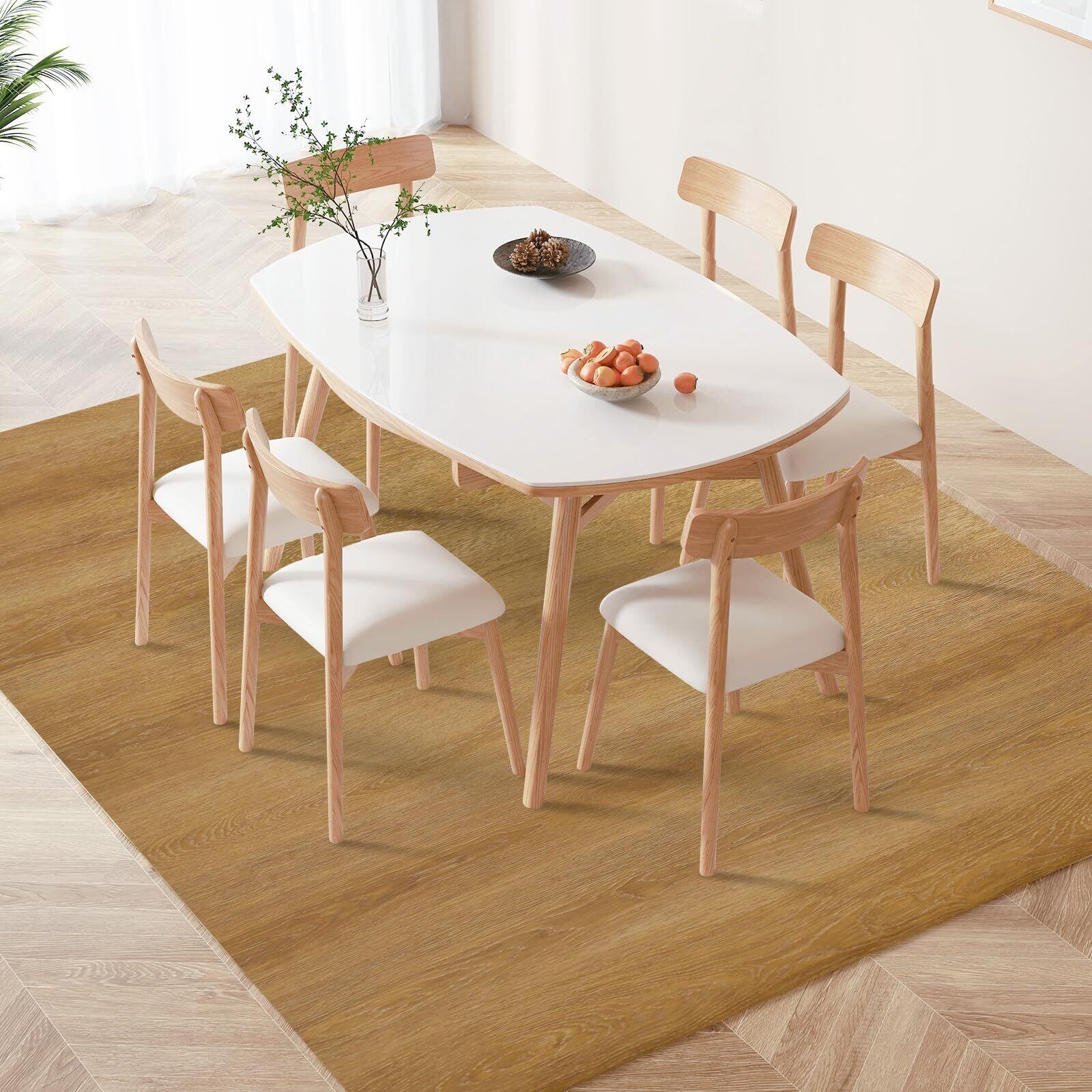 「PVC素材・さらっと拭くだけ」ダイニングの床って家の中で一番、傷や汚れがつきやすい場所です。家族が毎日食事をする場所ですから、少なくとも1日に2~3回の頻度で使いますので、清潔が大切です。汚れた際に雑巾でゴシゴシ擦るか、それでも洗濯ですか?この面倒な手間がダイニングマットならありません!一般的なダニングラグとは違い、表面は高品質PVC (ポリ塩化ビニール)素材で水や汚れに強い撥水機能、さっと一拭きで簡単キレイになります。掃除や洗濯の手間が掛からないから、ダイニングの床の掃除時間を大幅に短縮することが出来ました!