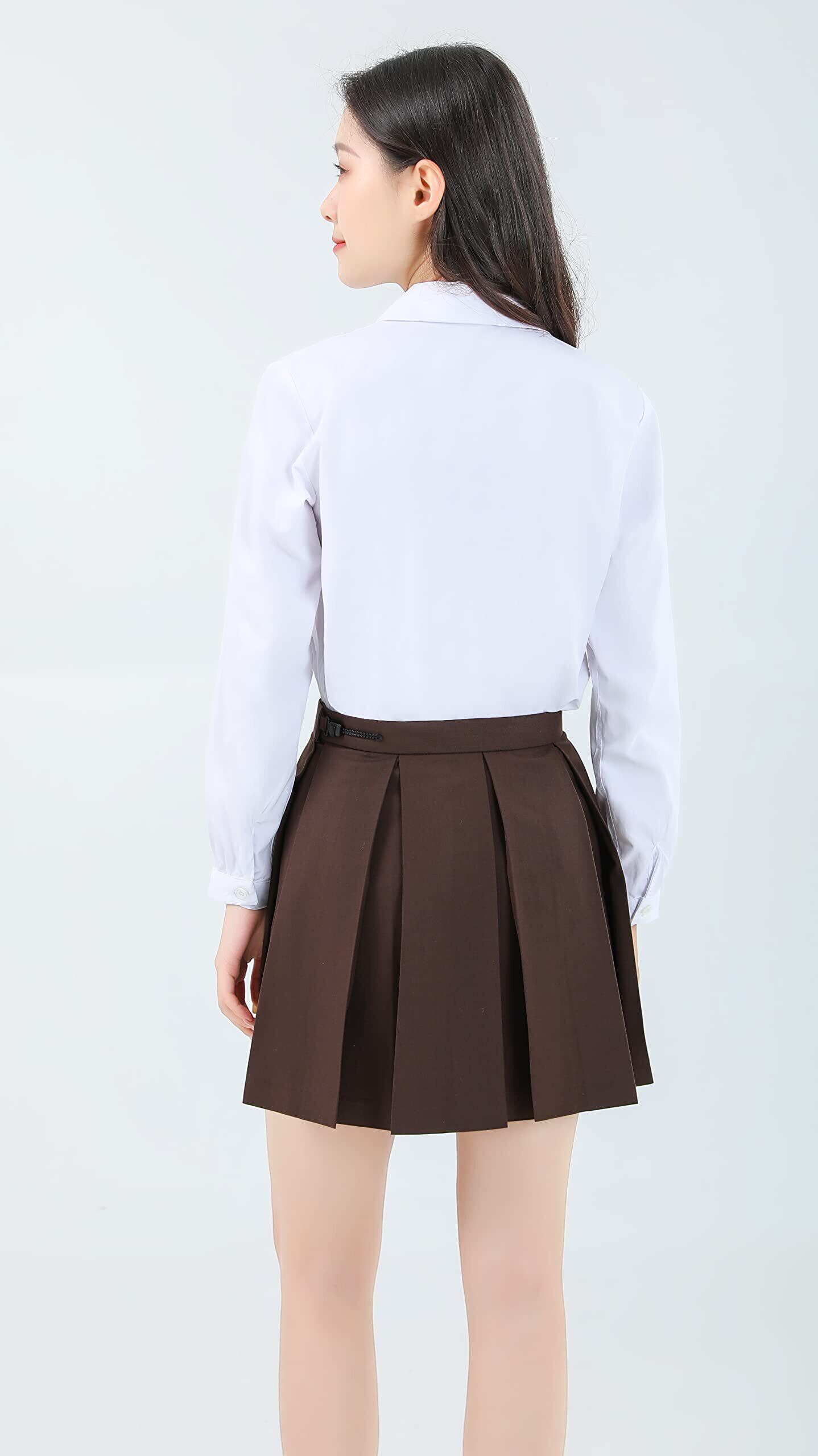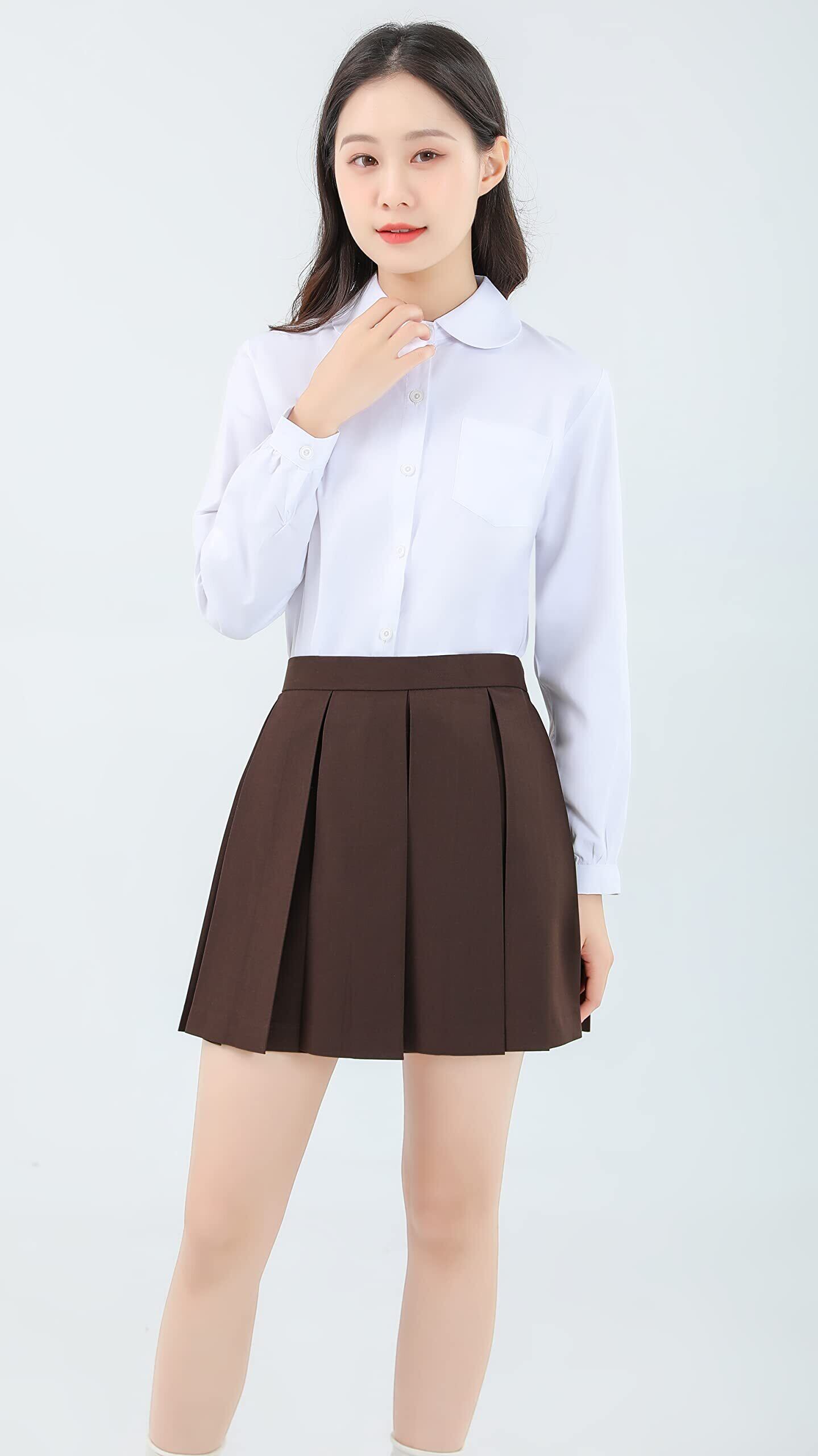 [Sharphon] 女子 スクールシャツ 長袖/半袖 丸襟 レディース 無地 綿 シャツ トップス ポケット付